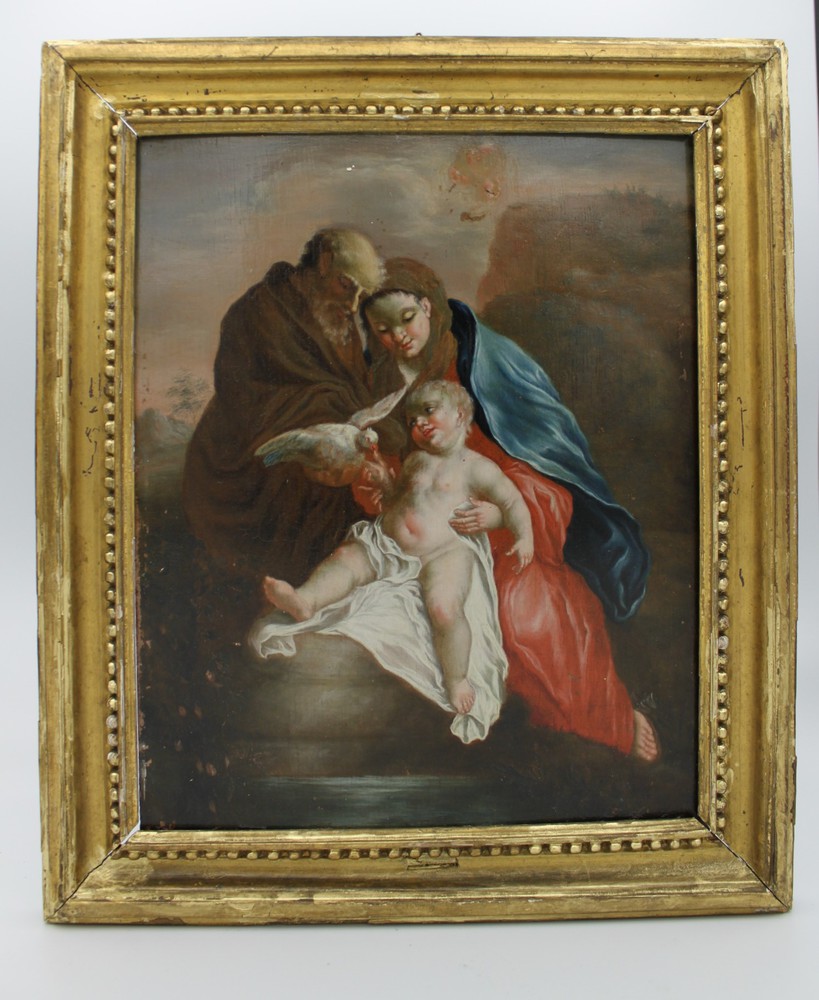 PITTORE FIAMMINGO DEL XVII SEC. "Sacra Famiglia" Olio su tavola cm 30,5x23,5...
