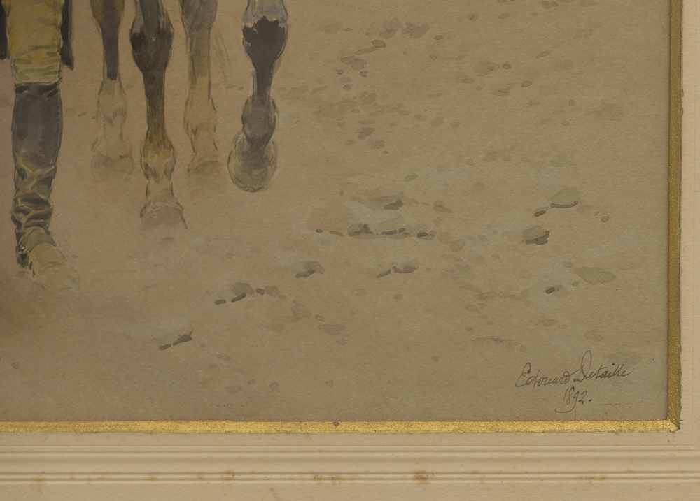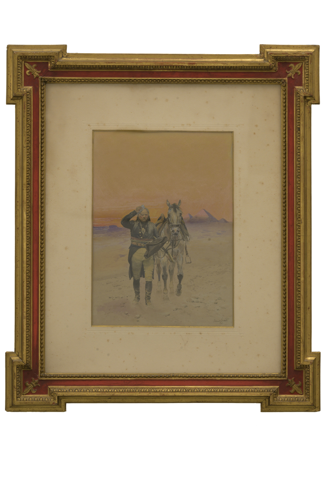 EDOUARD DETAILLE (Parigi 1848-1912) "Napoleone in Egitto" Acquerello su carta firmato e datato 1892, in basso a destra cm 35x25 Pittore di scene militari per eccellenza nella Francia della seconda metà dell'ottocento, documentarista e fervido patriota, con le sue immagini esalta le gloriose vicende della Grande Armata e e dell'esercito francese. Le sue opere sono conservate al Museo d'Orsay, Versailles, Bayonne, Chantilly, Tarbes e Carnavalet in Francia, all'estero sono conservate presso i musei di: Londra, Washington, Sidney, Budapest.