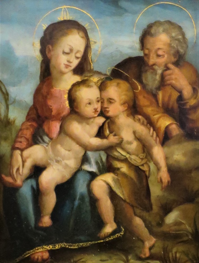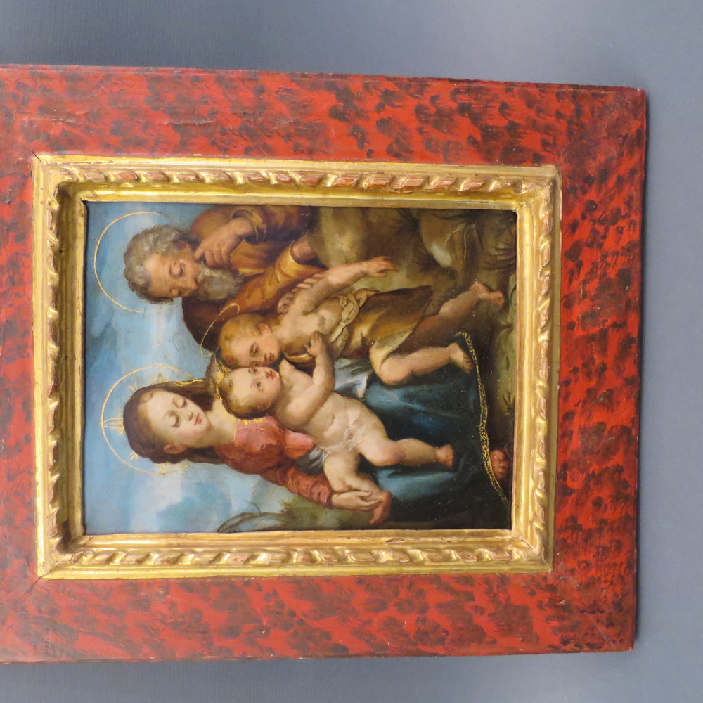 PITTORE ITALIANO DEL XVIII SEC. "Sacra famiglia con San Giovannino" Olio su rame