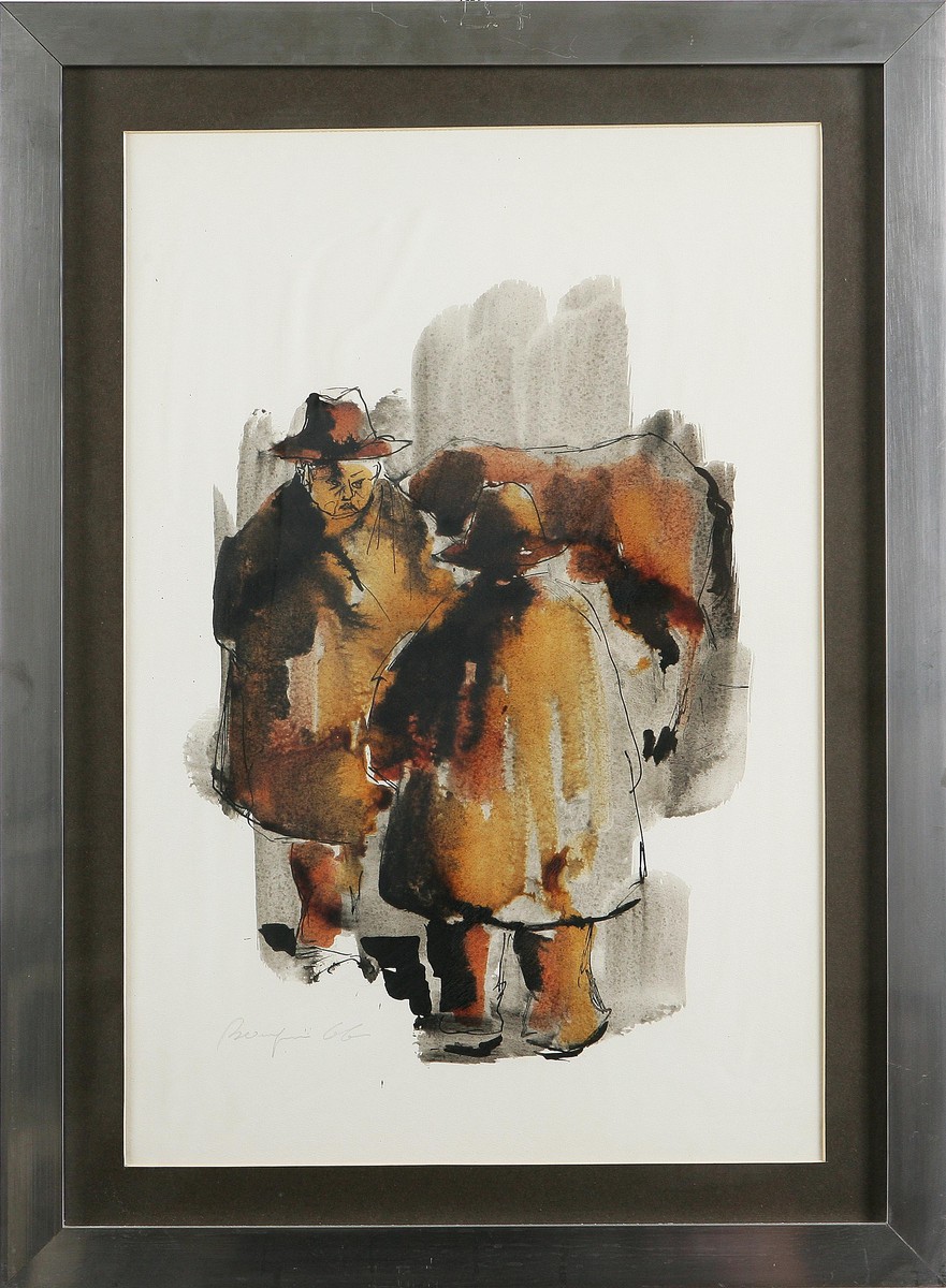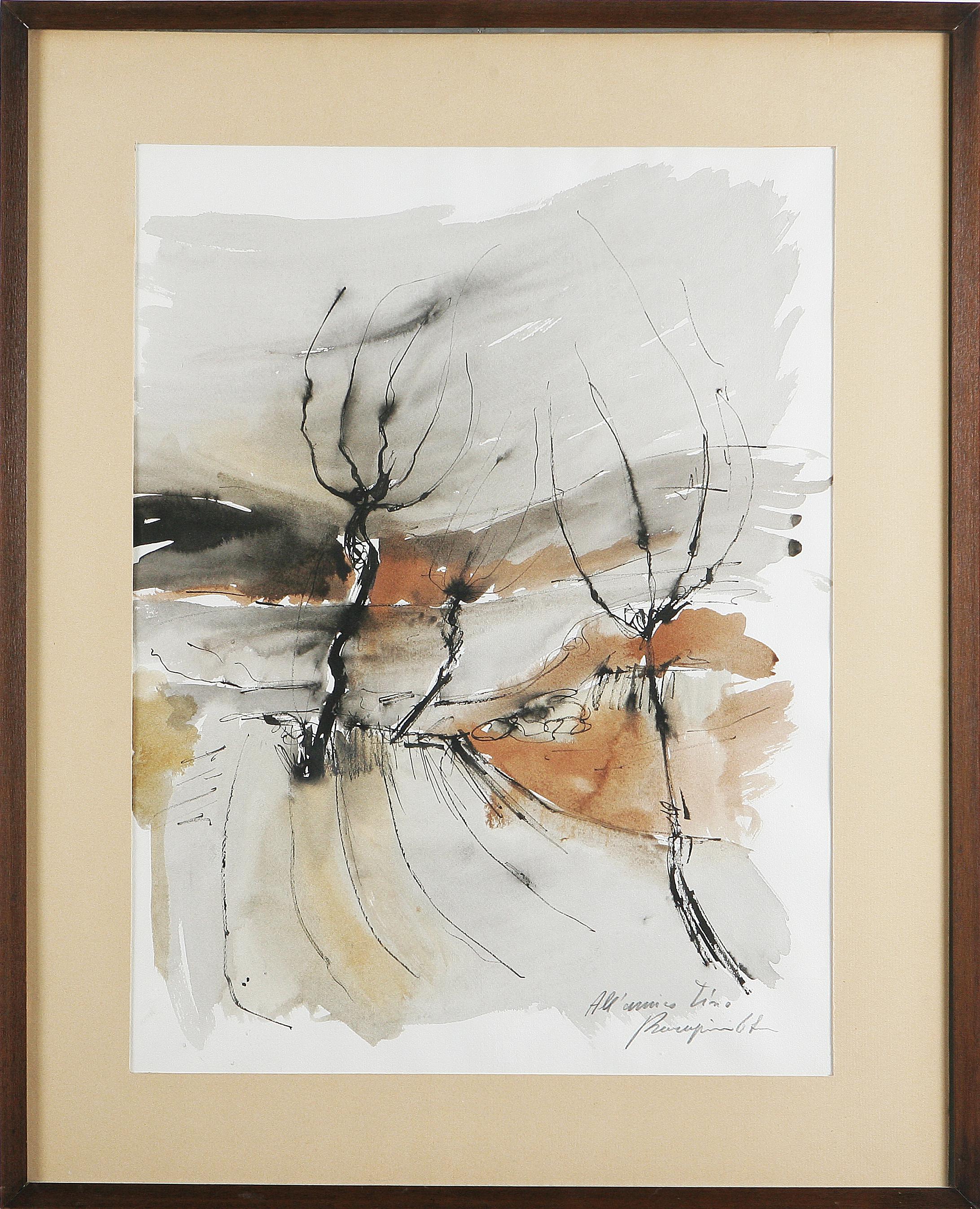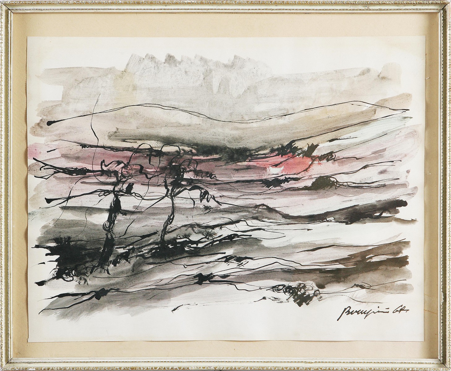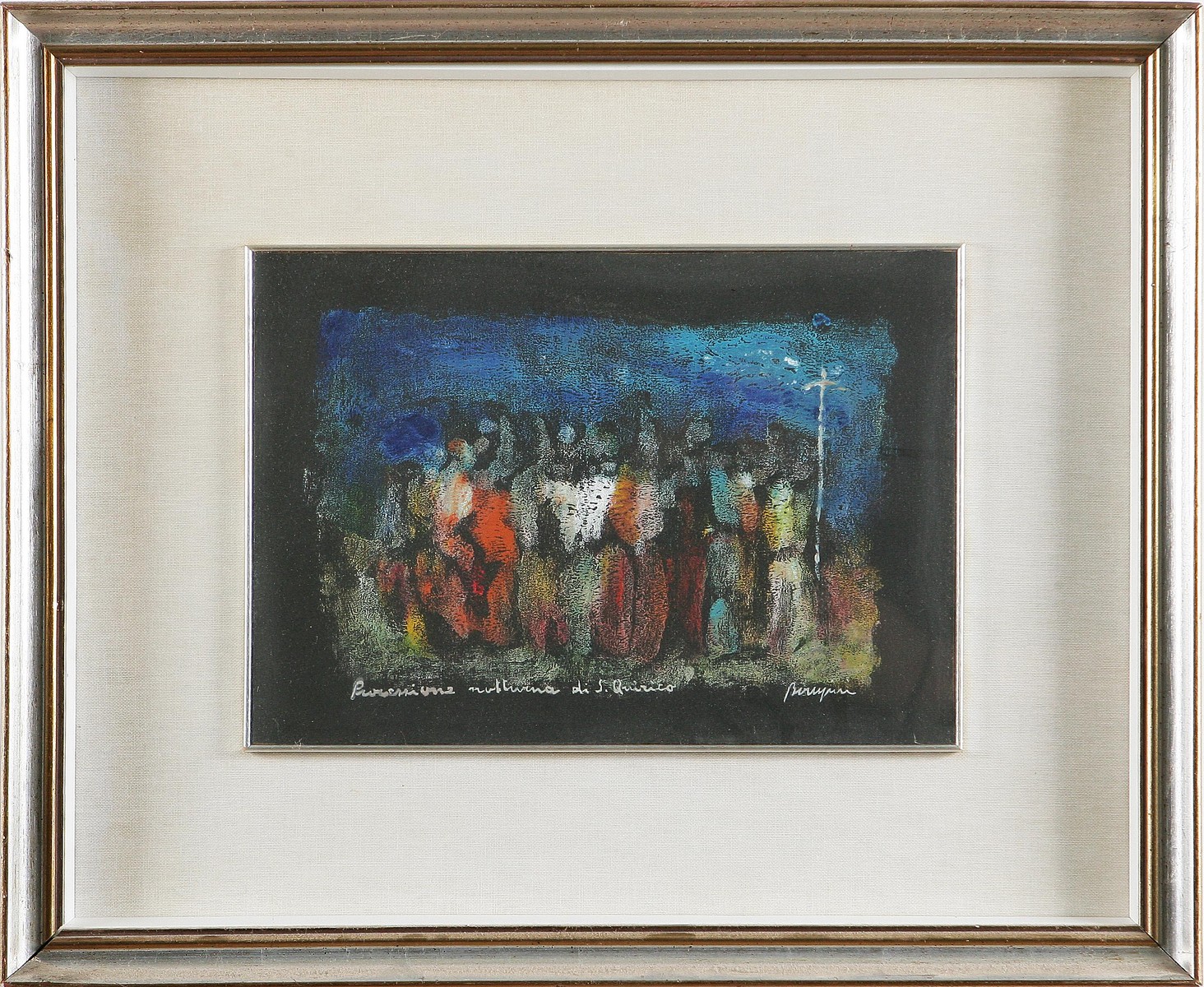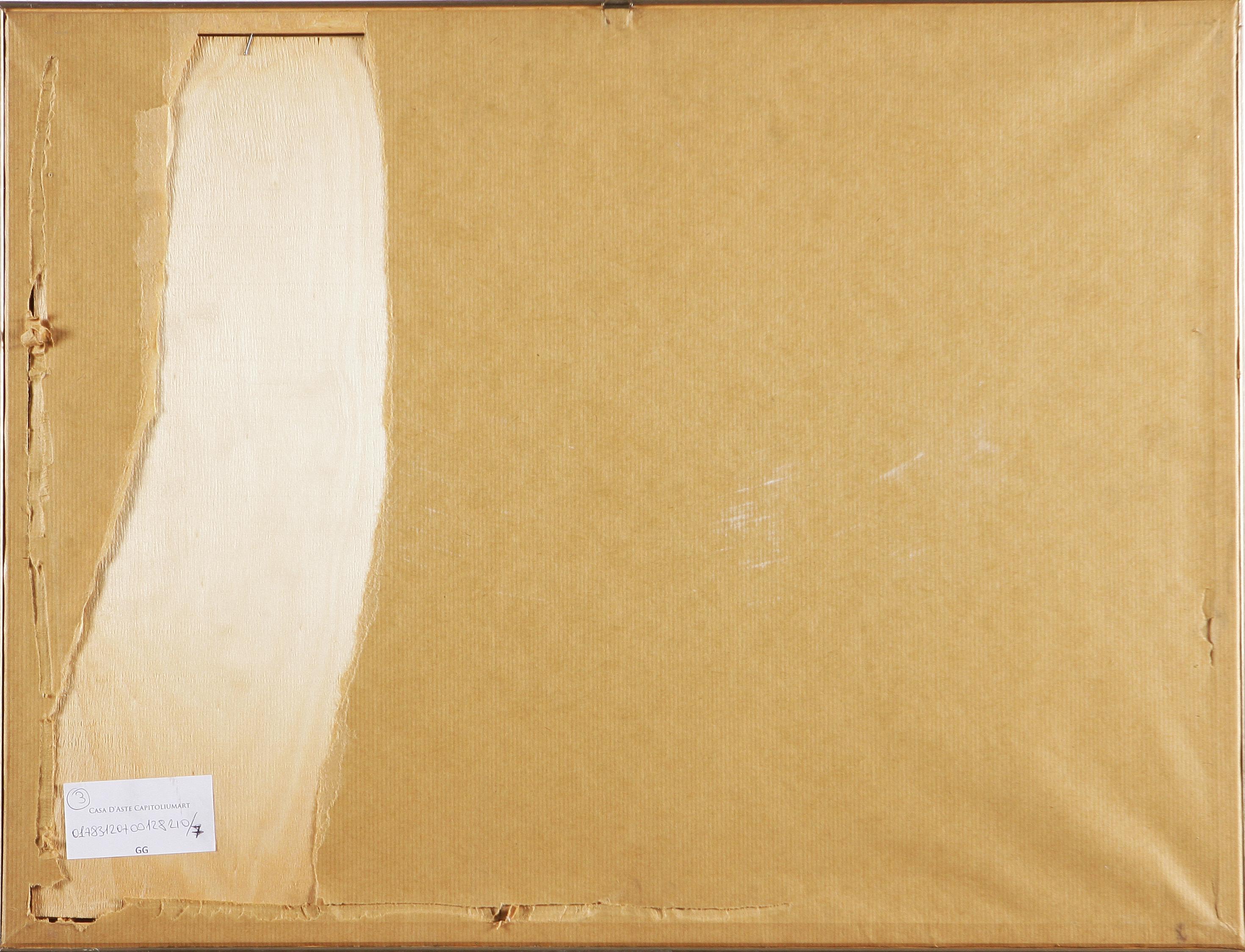 BONGINI SERGIO (1936 - 2011) Lotto composto da n7 opere. Tecnica mista. 1. Senza titolo, acquarello su carta, 63x42,5 cm, firma in basso a sinistra.2. Senza titolo, acquarello su carta, 62x42 cm, firma in basso a sinistra.3. Senza titolo, acquarello su carta, 31x44,5 cm, firma in basso a destra.4. Processione notturna di San Quirico, olio su tavoletta, 23x33 cm, firma in basso a destra, titolo in basso a sinistra.5. Senza titolo, acquarello su carta, 64,5x48,5 cm, firma e dedica in basso a destra.6. Senza titolo, acquarello su carta, 27x35 cm, firma in basso a destra.7. Senza titolo, ceramica, 19x20, firma alla base. Cornice presente.