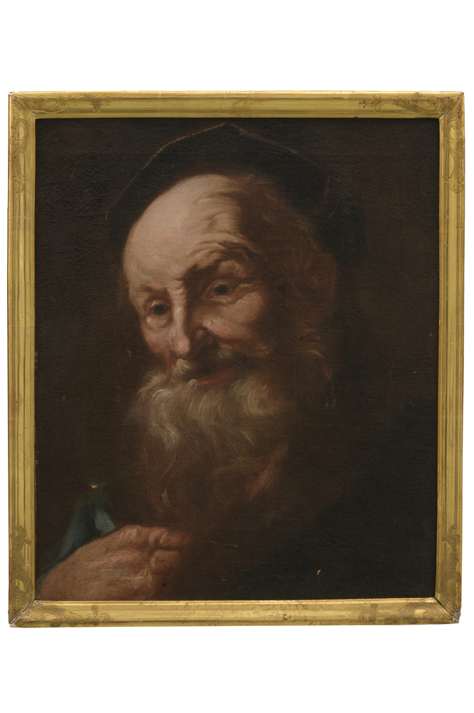 BARTOLOMEO NAZZARI (Clusone 1693- Milano 1758) attr. "Testa di carattere" Olio su tela cm 43,5x36 Bergamasco di origine, dopo i primi rudimenti dell'arte pittorica appresi da Ghislandi si trasferisce a Venezia come allievo di Angelo Trevisani e in seguito presso Luti a Roma. Tornato a Venezia inizia la sua carriera autonoma dipingendo memore dell'estro espressivo di Ghislandi, del morbido colorismo rococò e del chiaroscuro piazzettesco. Nelle teste di carattere, tanto in voga in quel tempo, guarda alla pittura nordica, come riassume Palucchini: "In simili teste v'è un generico tiepolismo, ma più spesso Reimbrandt è preso a modello" "La pittura veneziana del settecento" Istituto per la Collaborazione Culturale Venezia-Roma 1960, pag. 126).