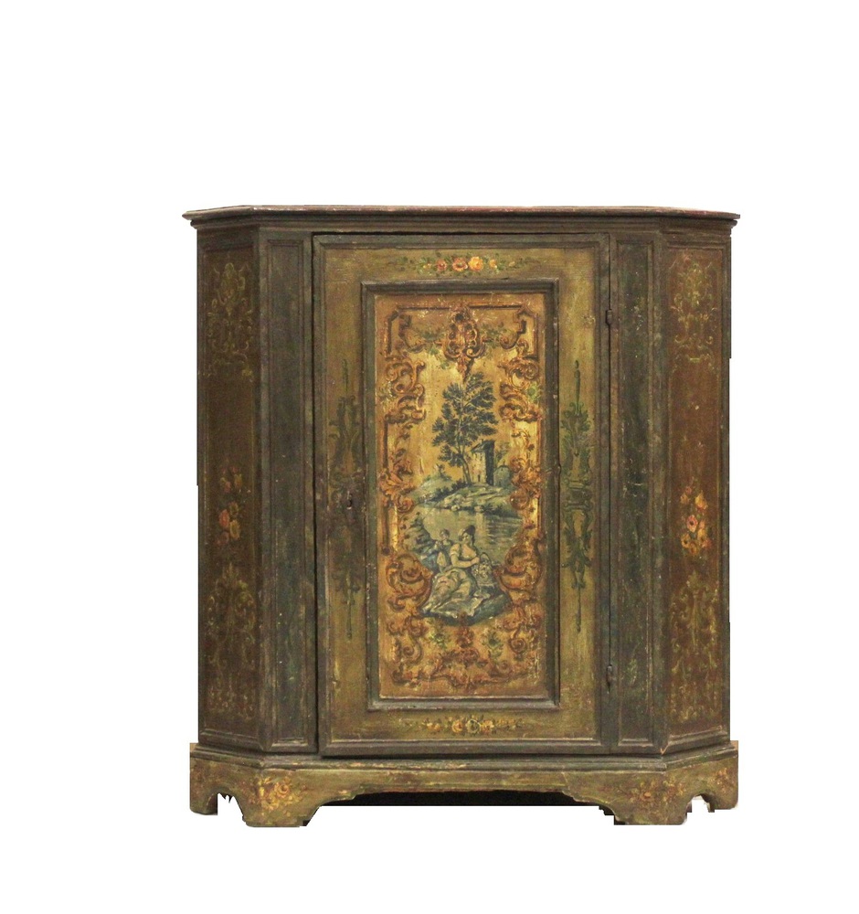 CREDENZA angolare in abete dipinto realizzato con utilizzo di materiale antico cm 110 x62x110