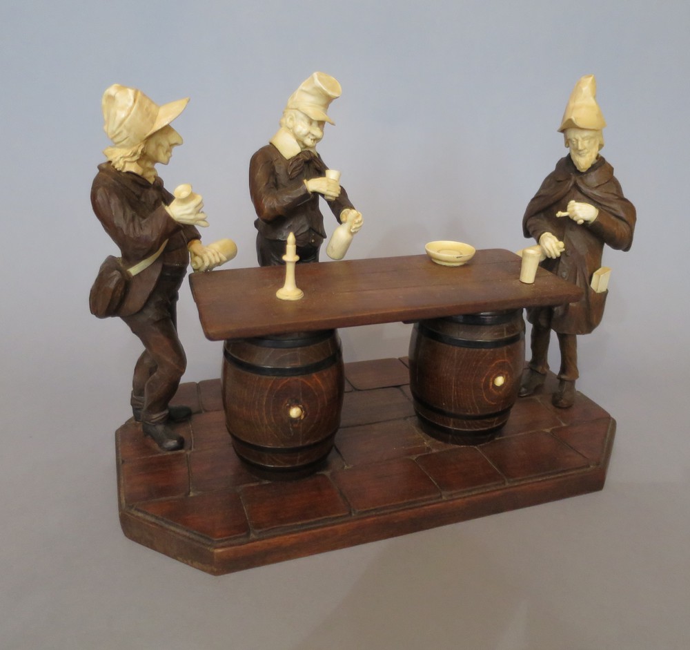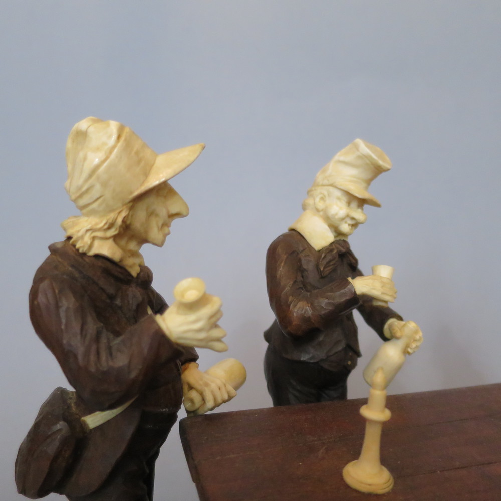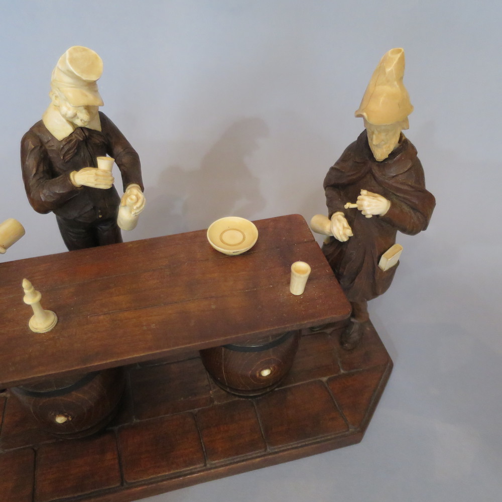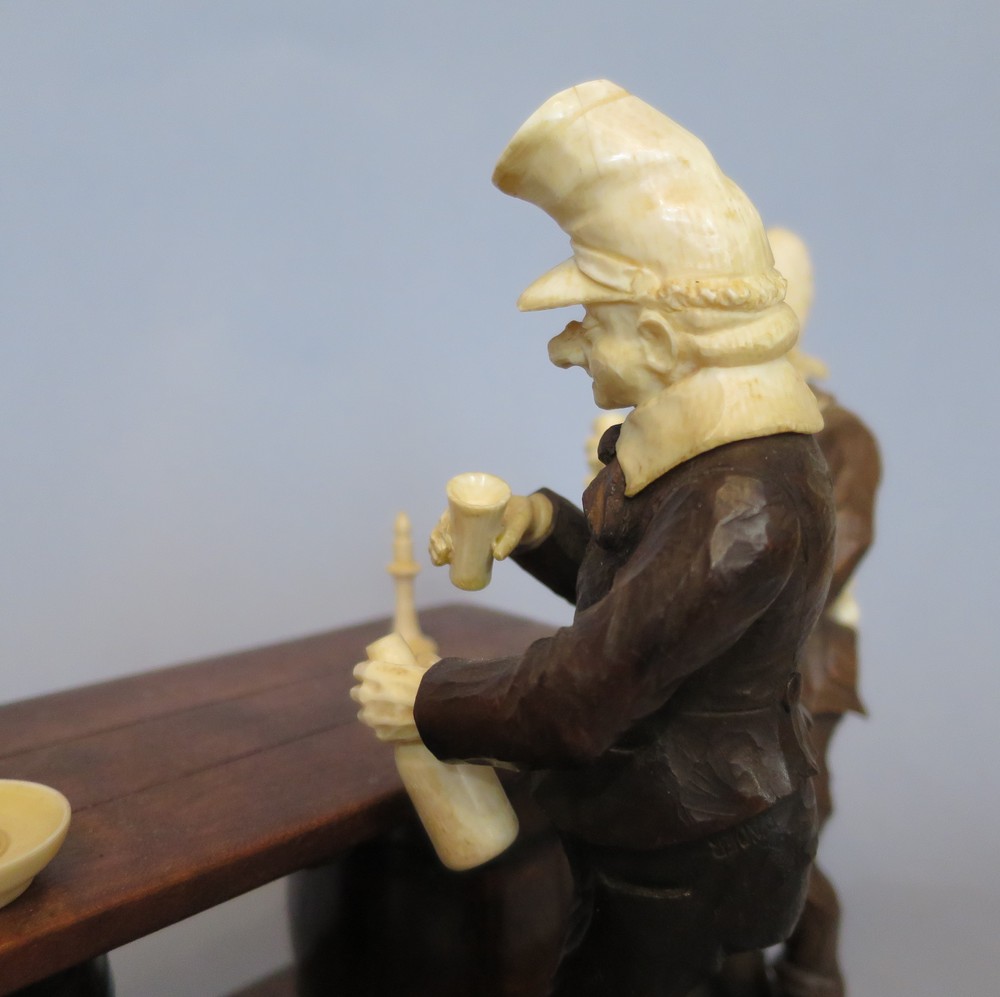 GRUPPO SCULTOREO "Bevitori" Legno scolpito ed avorio Germania transizione XVIII/XIX sec. cm 19x26x15