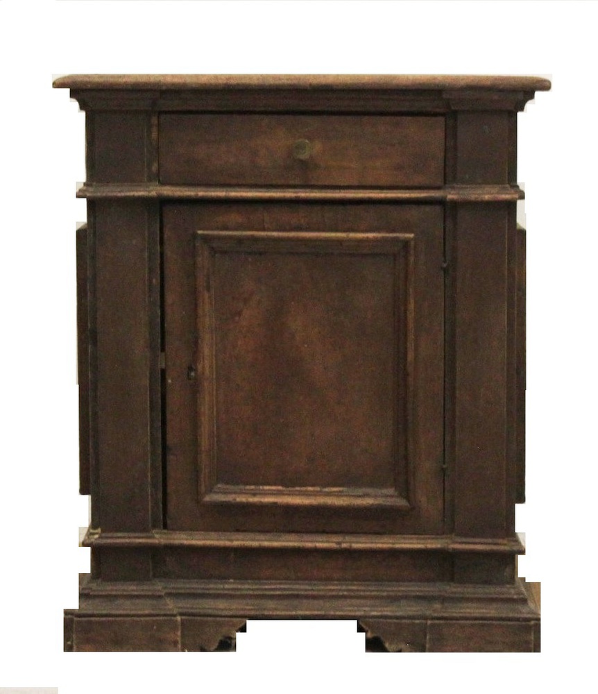 PICCOLA CREDENZA in noce realizzata da antico inginocchiatoio fronte con cassetto e anta cm 67x26x80