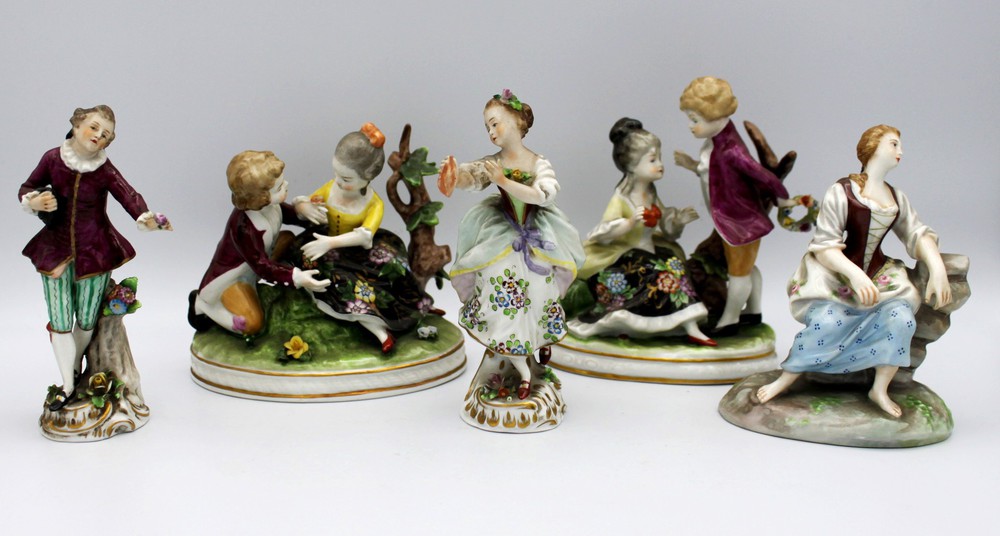 GRUPPO CINQUE SCULTURE in porcellana policroma. Manifattura di Capodimonte....