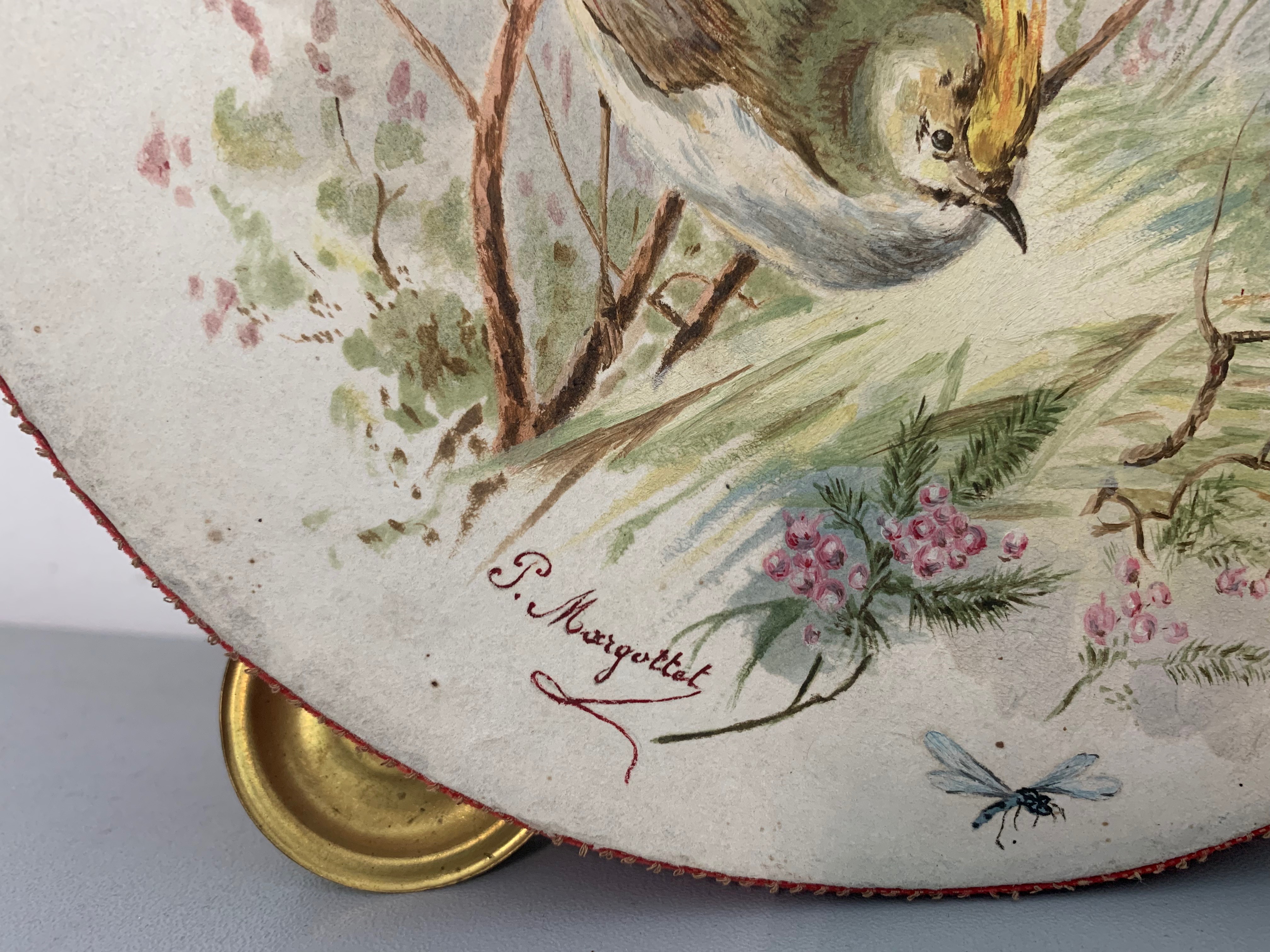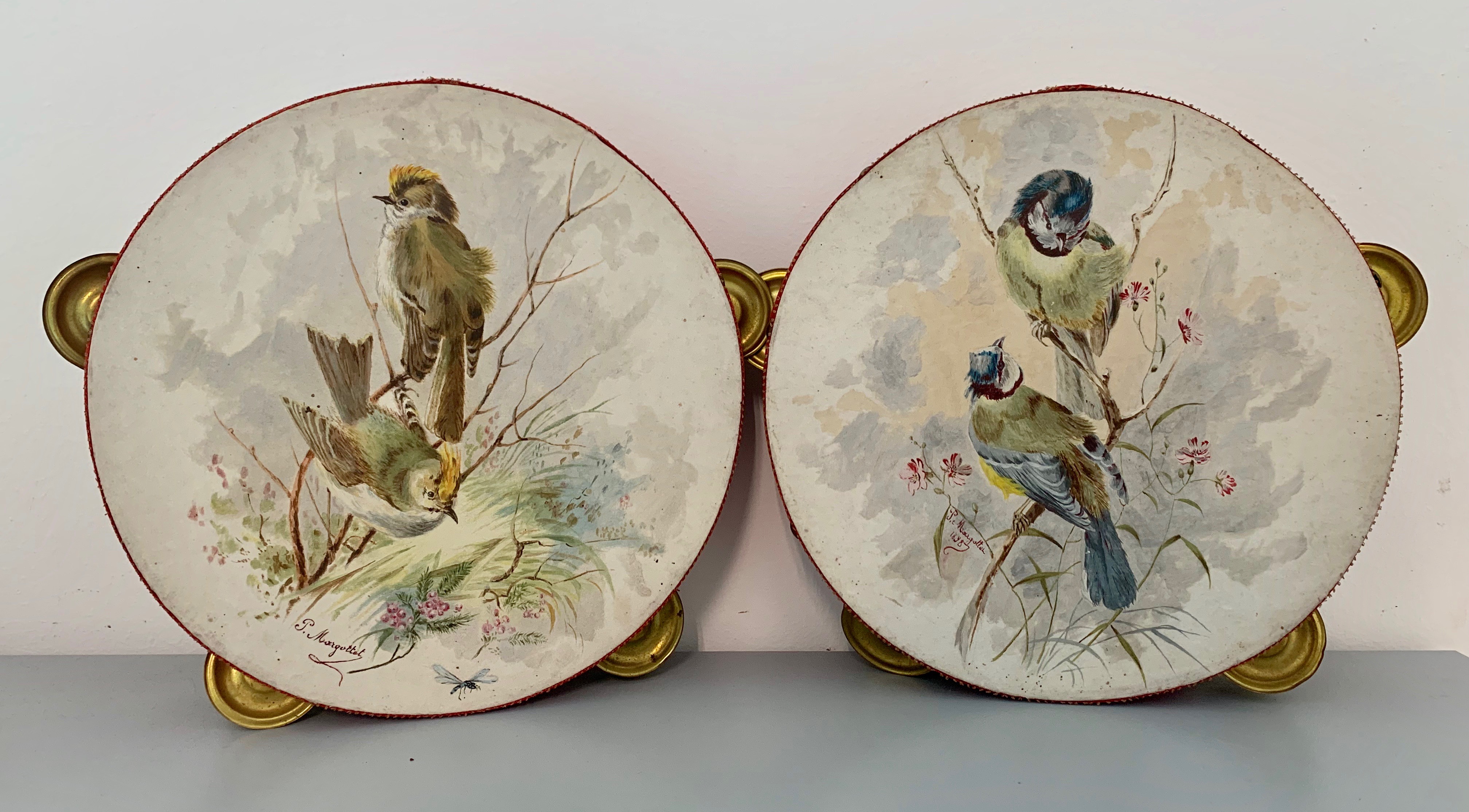PITTORE FRANCESE DEL XIX SEC. Coppia di tamburelli dipinti Olio su pergamena cm 21,5x21,5 Firmati e datati "P. Margottet 1898"