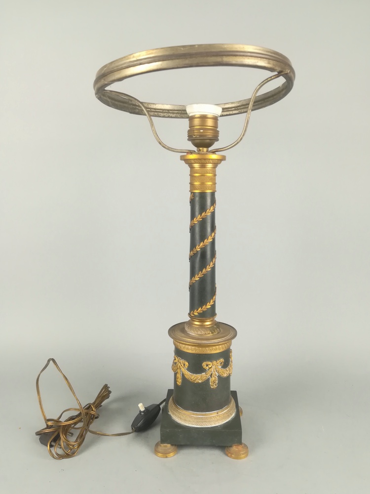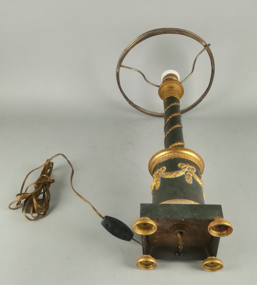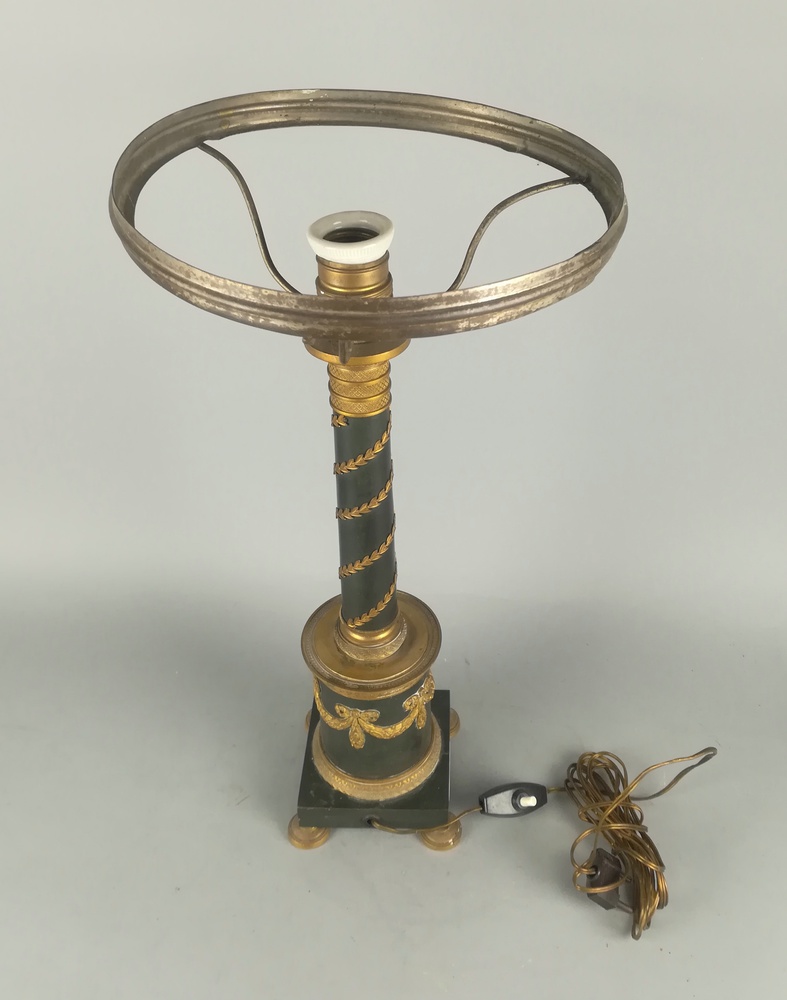 LAMPADA Lampada da tavolo in ottone brunito con finiture dorate in stile Impero. XX secolo cm 43