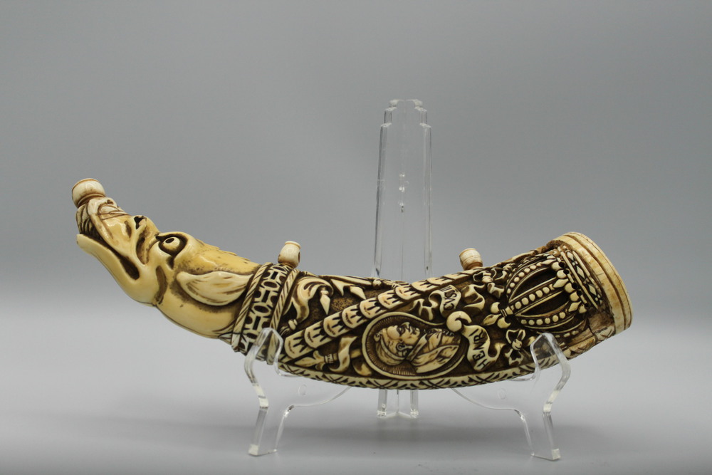 PORTA POLVERE DA SPARO Porta polvere da sparo in avorio. Germania XIX sec. cm...