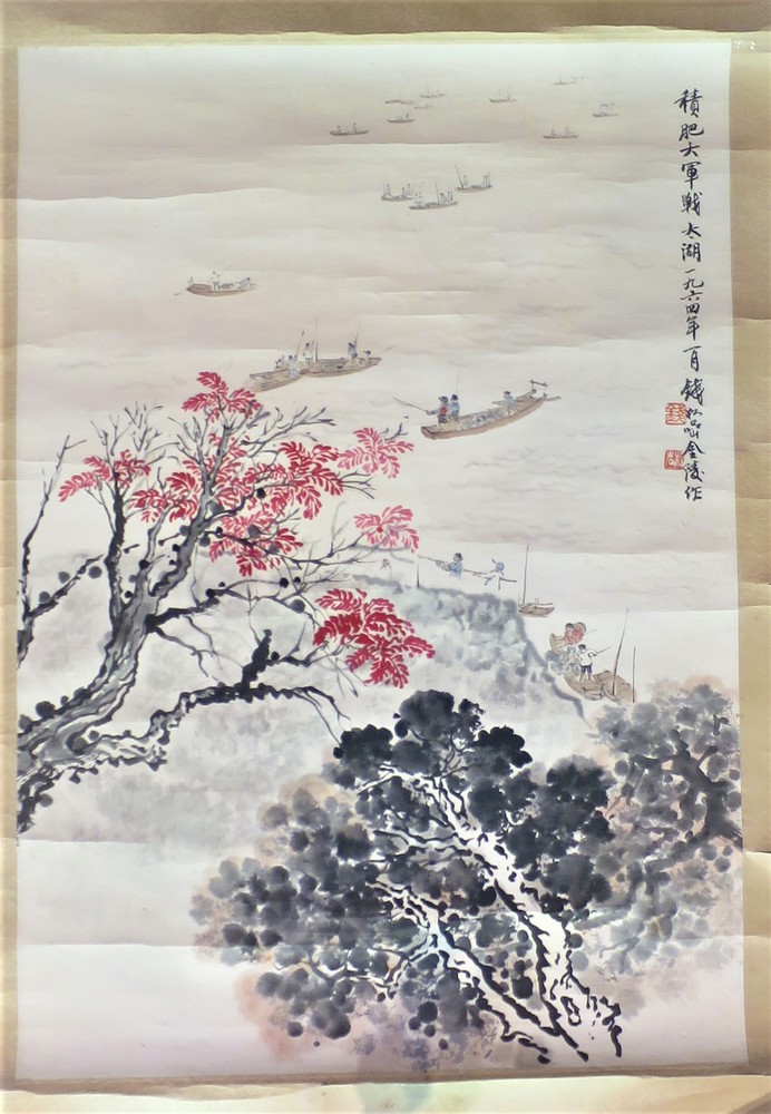 PITTORE CINESE ATTIVO ALL'INIZIO DEL XX SECOLO "Paesaggio con pescatori"...