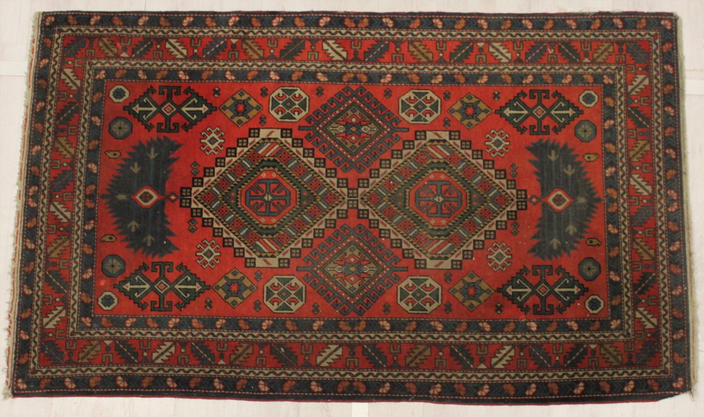 TAPPETO Trama e ordito in cotone vello in lana 1950 ca. cm 200x133