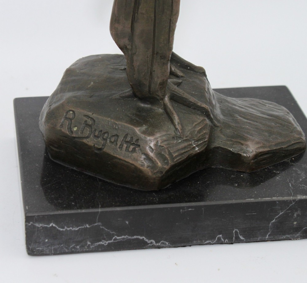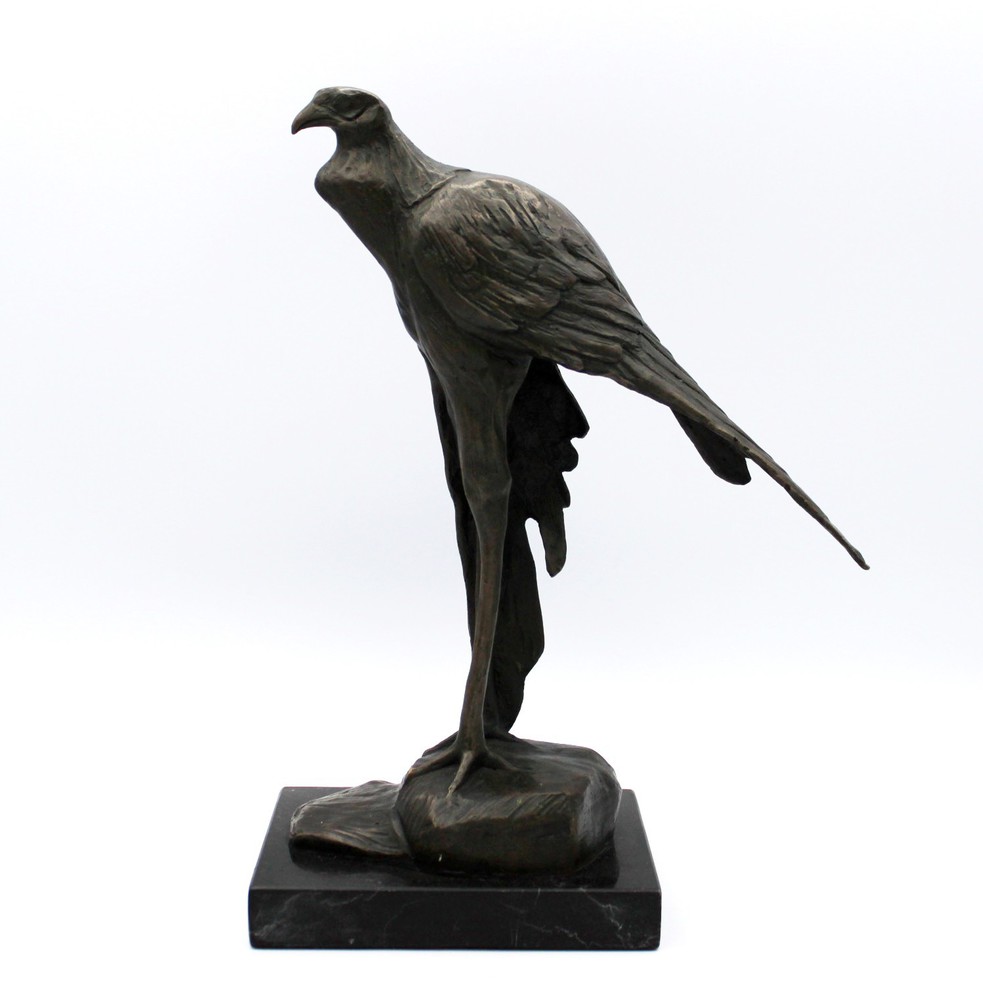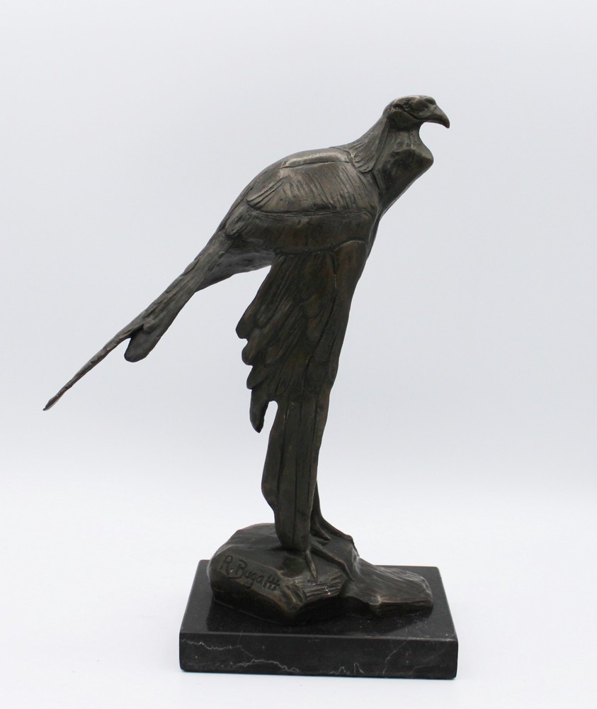 REMBRANDT BUGATTI (Milano 1884 - Parigi 1916) "Falco serpentario" Scultura in bronzo patinato su base in marmo nero. Firma sulla base cm 28