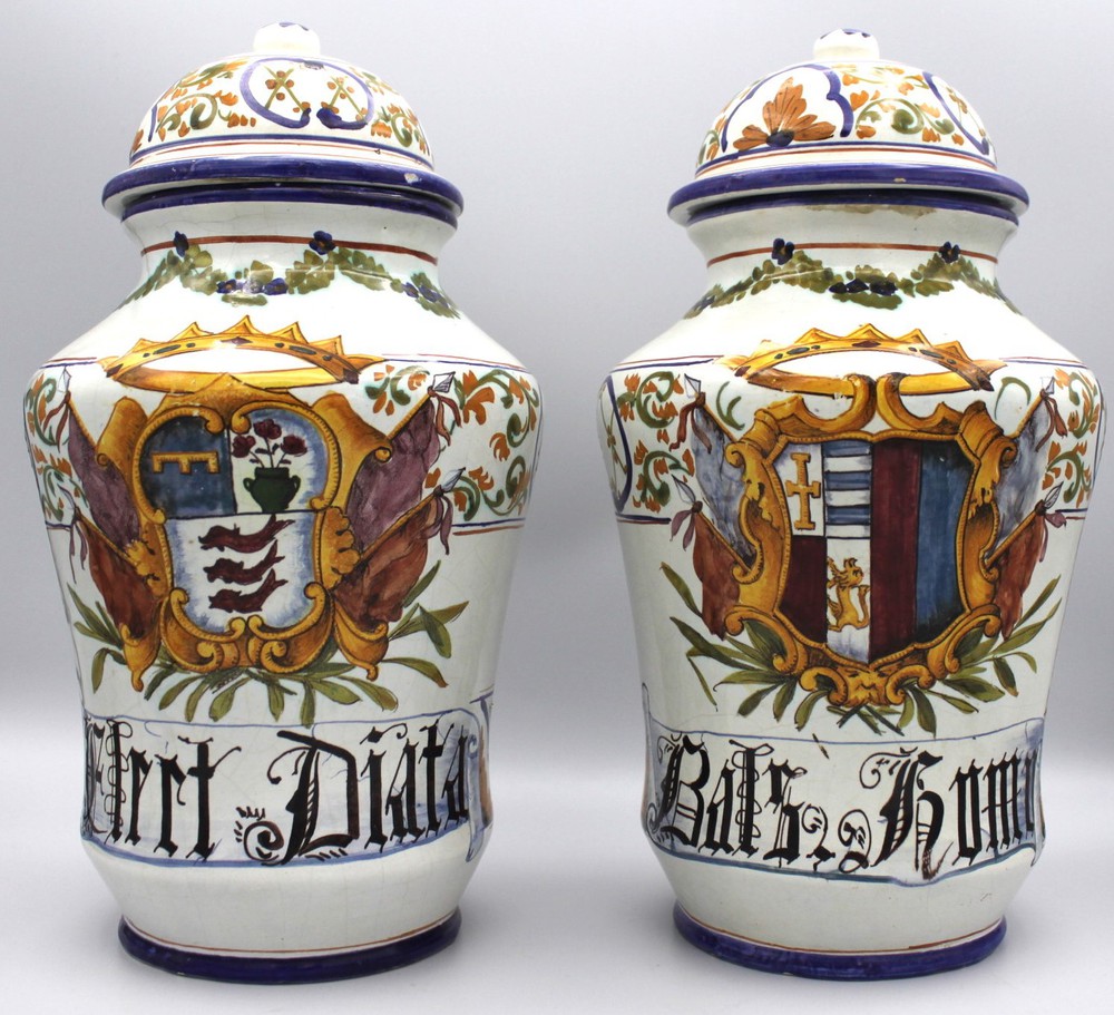 MANIFATTURA ITALIANA DEL XX SEC. Coppia di vasi da farmacia Firma sul fondo...