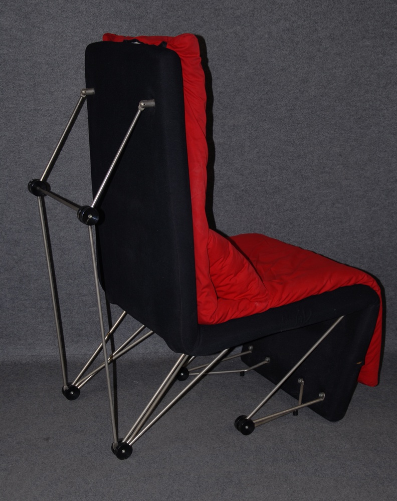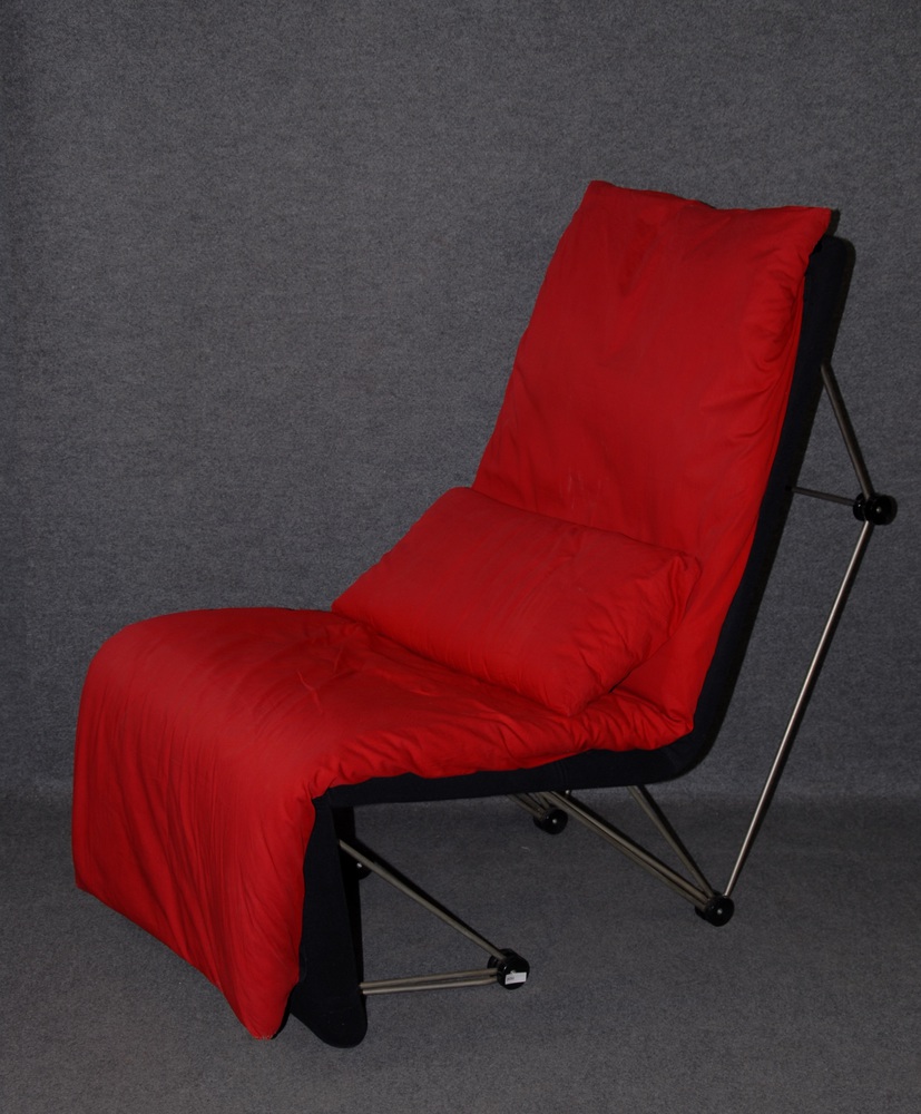 CHAISE LONGUE Chaise longue con base in tubi in acciaio regolabili a compasso. Anni 70