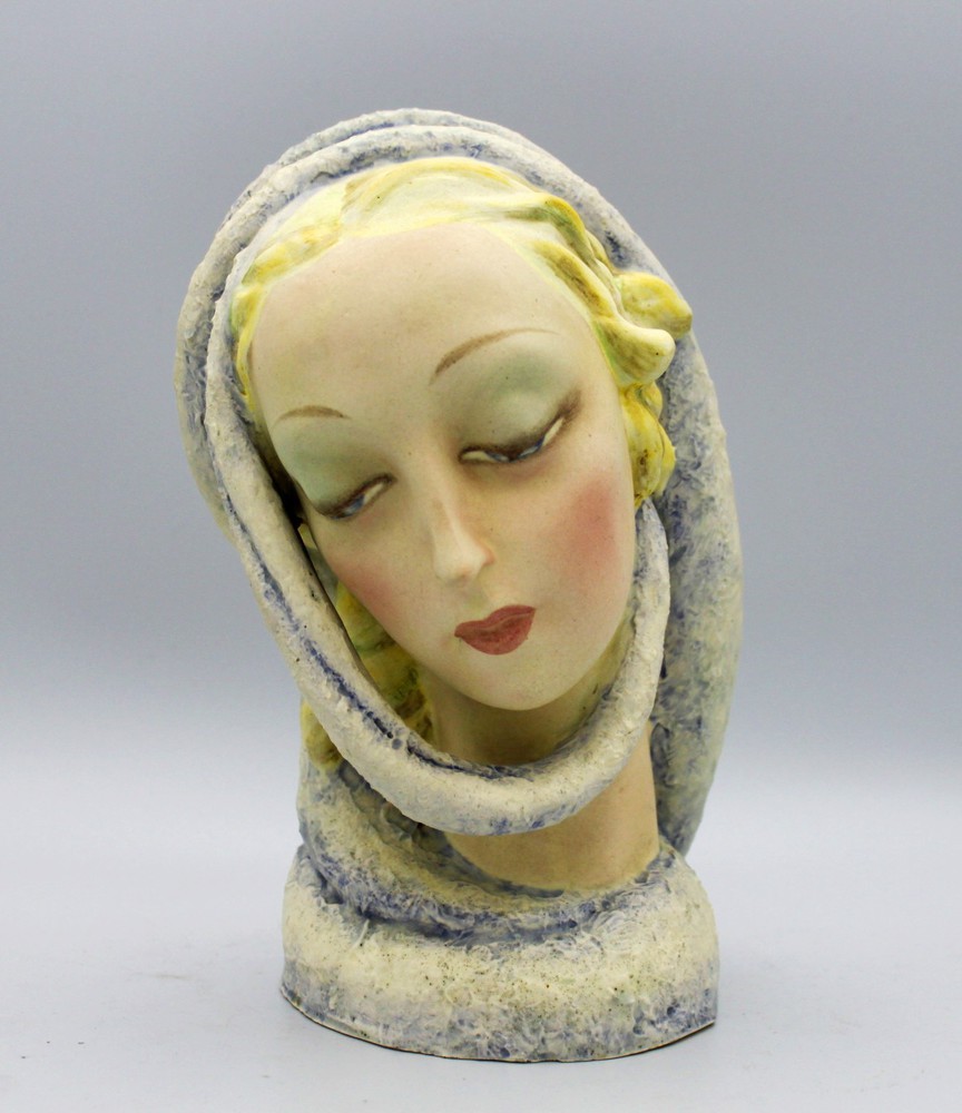 RUFFO GIUNTINI (1989 - 1980) "Testa di Donna" Terracotta maiolicata decorata in policromia (1943 - 1945). cm 24x15x15