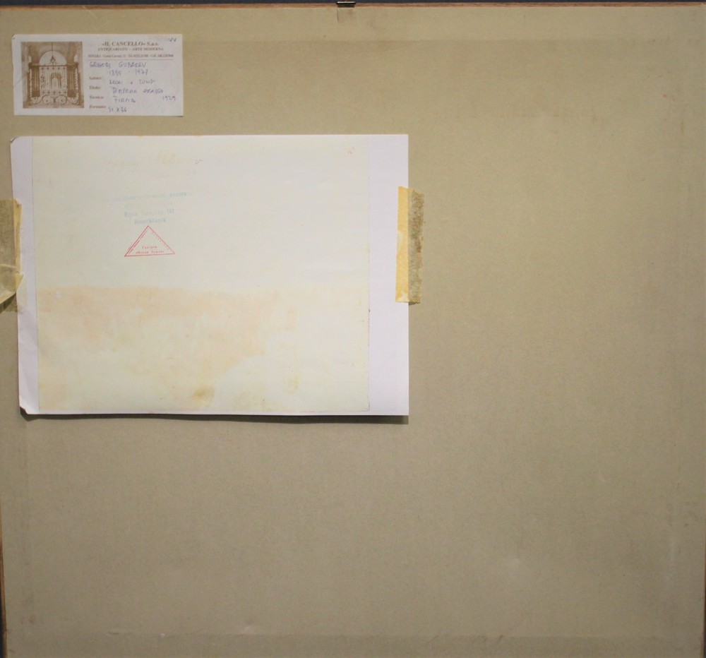 PITTORE ATTIVO NEL XX SEC. "Composizione informale" olio su cartoncino firmato e datato 1929 in basso a destra cm 32x36 Cartiglio del Antiquariato Il Cancello Novara con certificato rilasciato dal Dott. Cesare Lisandria.