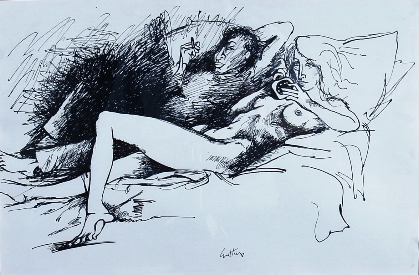 GUTTUSO RENATO (Bagheria 1912 - Roma 1987) "Nudi" '80 acquerello e china su...