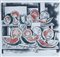 "Il banco dei cocomeri " 1978 Acquaforte a tre colori su carta es. 24/100 cm. H: 50.00 P: 70.00 Firma in basso a destra. Tiratura in basso a sinistra. Pubblicata sulla copertina del catalogo "Guttuso", opere grafiche Club Amici dell'Arte Editore e a pag. 163.