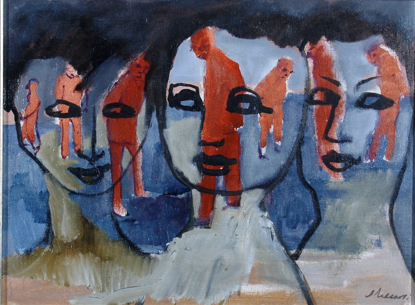MACCARI MINO (Siena 1898 - Roma 1989) "Tre volti" 1989 Olio su carta intelata...