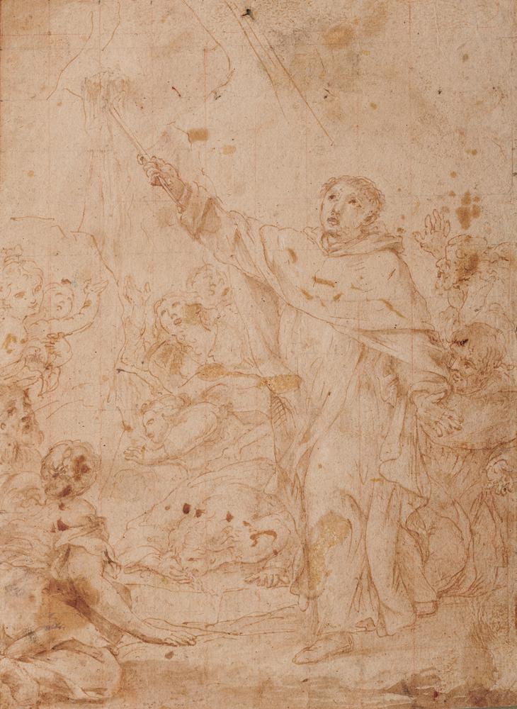Scuola Italiana del XVII secolo SCENA DI UN MIRACOLO Penna e inchiostro bruno. mm 260x186.