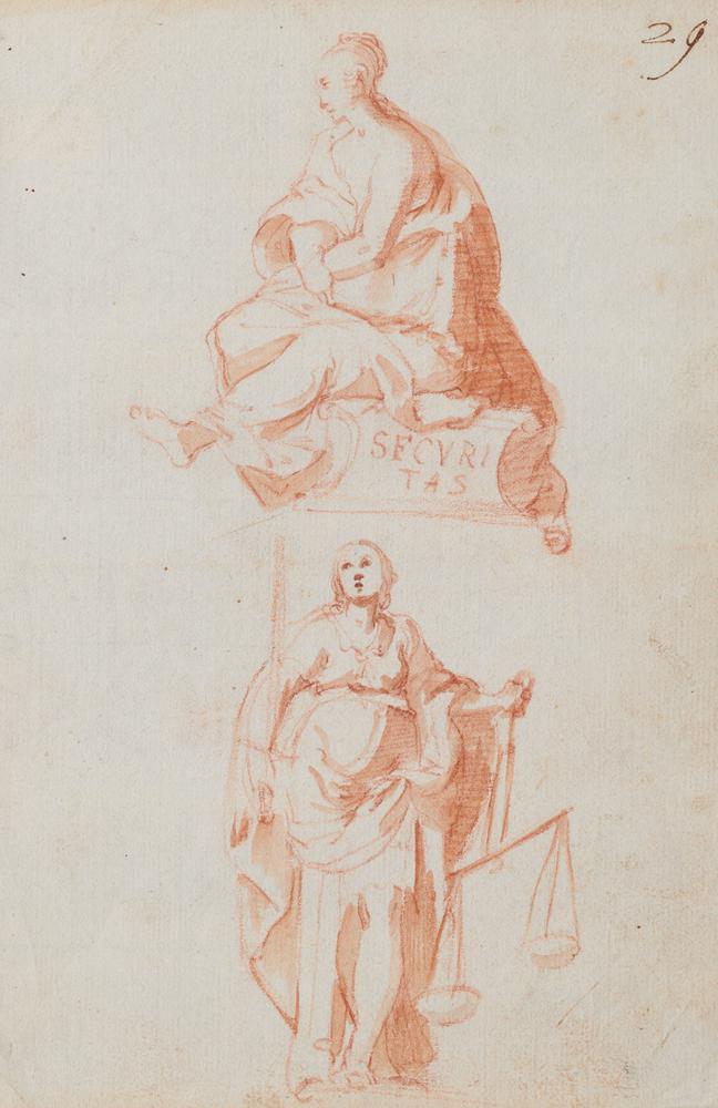 Scuola Emiliana del XVII secolo SECURITAS E GIUSTIZIA Matita rossa e...