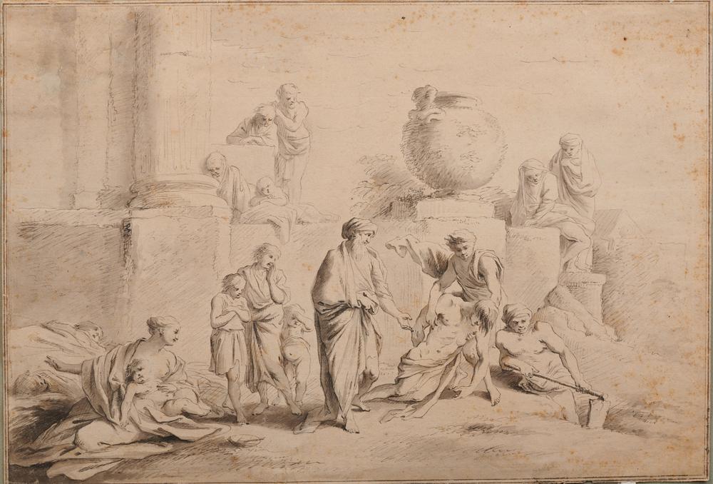 Scuola Francese del XVIII secolo SCENA DI SEPPELLIMENTO Penna e inchiostro nero. mm 282x412.