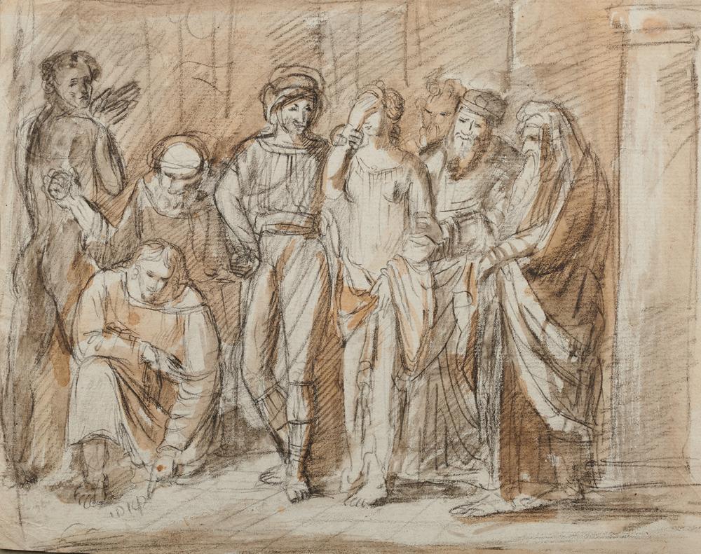 Scuola Lombarda del XIX secolo SCENA STORICA Gessetto nero e inchiostro bruno. mm 210x262.