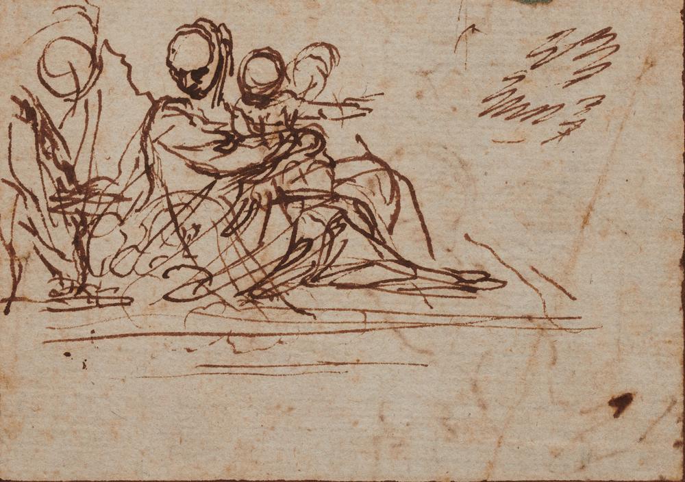Scuola Italiana del XVII secolo STUDIO PER UNA SACRA FAMIGLIA Penna e inchiostro bruno. mm 70x100.