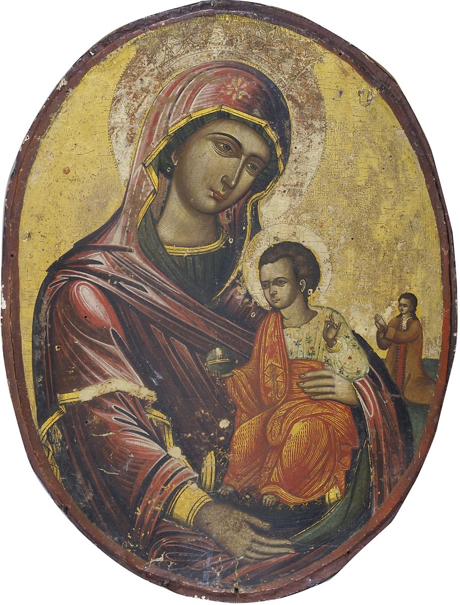 Maestro greco-dalmata del XVII secolo "Madonna con bambino e committente in...
