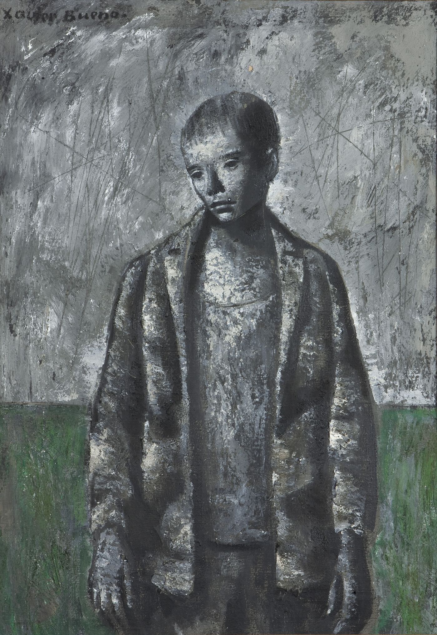 BUENO XAVIER Vera di Bidasoa (E) 1915 - 1979 Firenze "Ragazzo" anni '70 70x50 olio su tela sabbiata Opera firmata in alto a sinistra Piccola caduta di colore in alto a destra