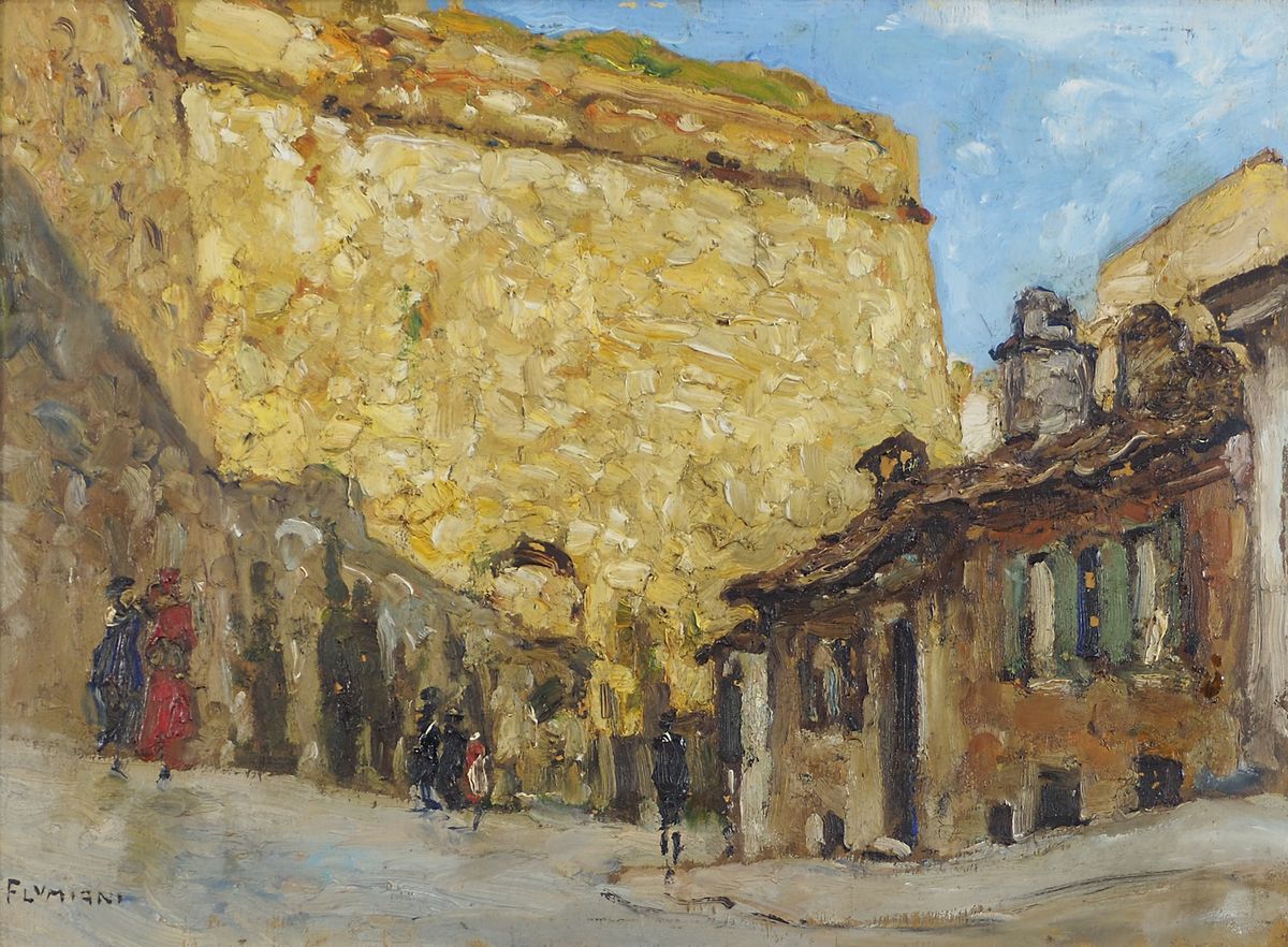 Ugo Flumiani Trieste 1876-1938 "Nei pressi di San Giusto" cm. 29x39 - olio su tavoletta Firmato b. a s.