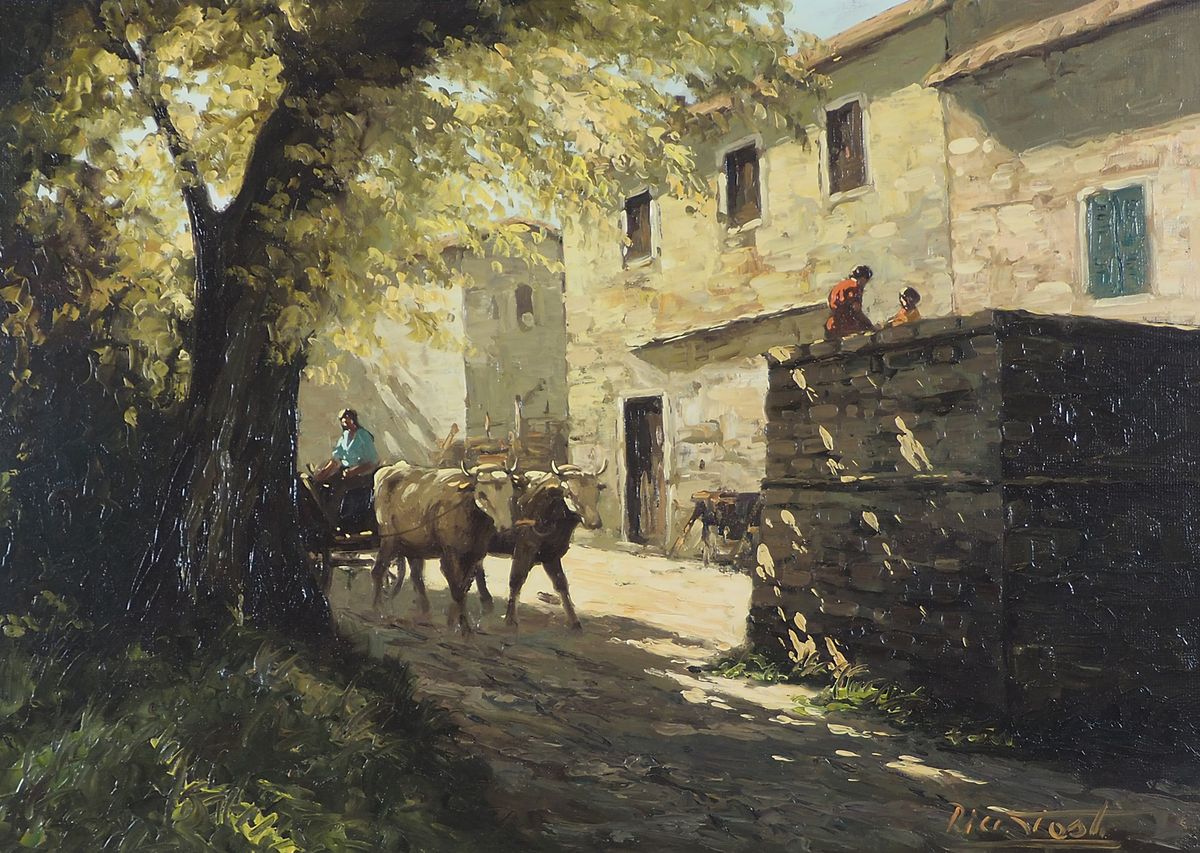 Riccardo Tosti Trieste 1910-1986 "Villaggio" cm. 50x70 - olio su faesite Firmato b. a d.