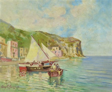 Angelo Cannone 1899-1992 "Porticciolo" cm. 33x41 - olio su tela Firmato b. a s.