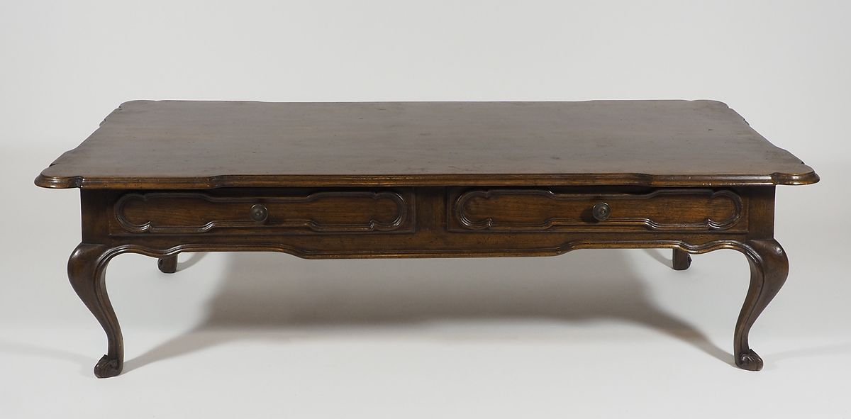 Tavolo basso rettangolare con 2 cassetti. cm. 44x150x68.