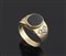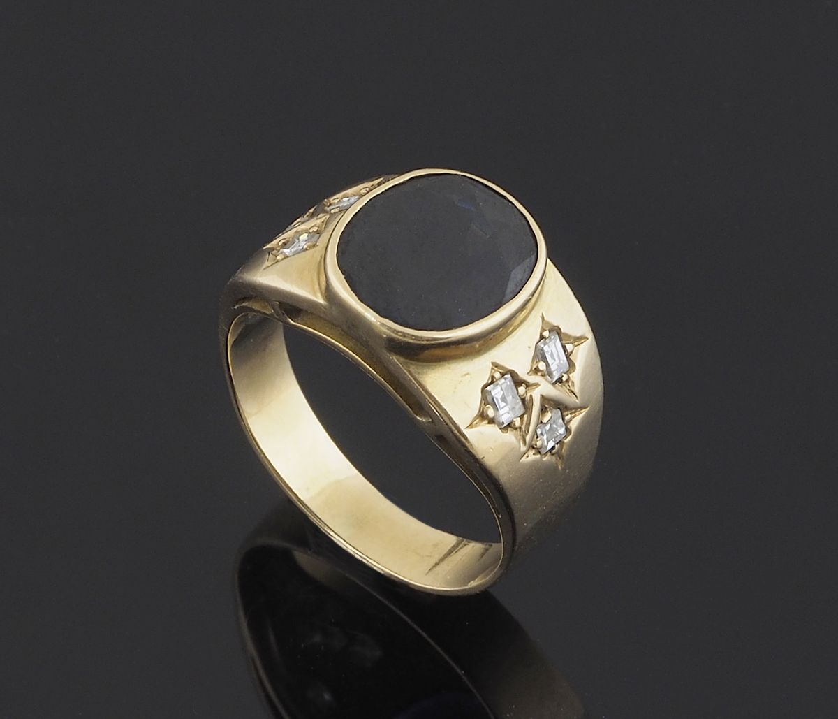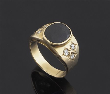 Anello in oro giallo con zaffiro centrale e brillanti.Misura 17