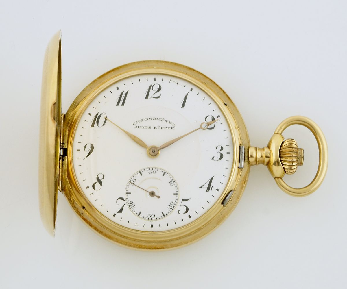 Jules Kuffer: orologio da tasca in oro 14Kt a tripla cassa, quadrante con...