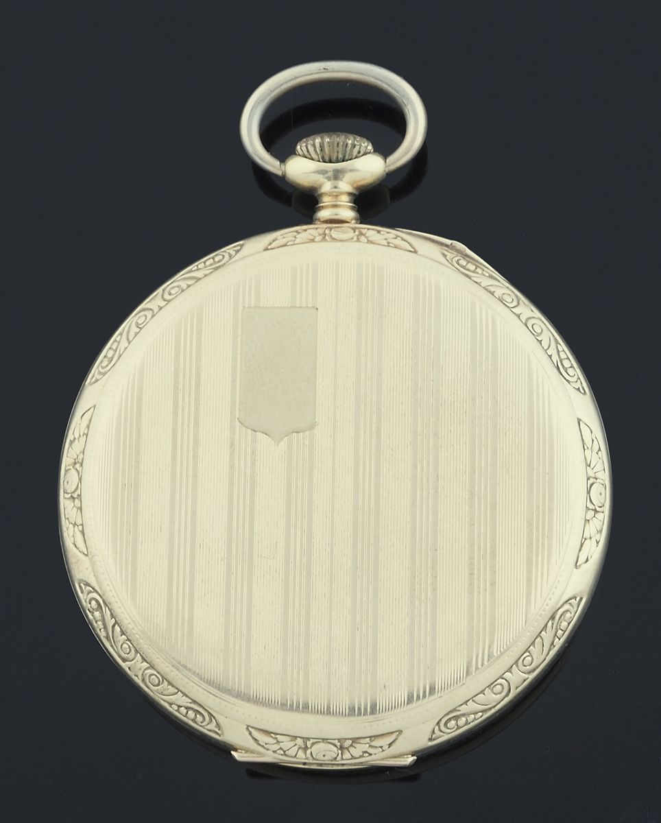 Union: orologio da tasca in oro 14Kt con cassa incisa ai bordi, quadrante con...