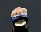 Anello in oro giallo a cupola con smalto blu e 3 coralli cabochon contornati...