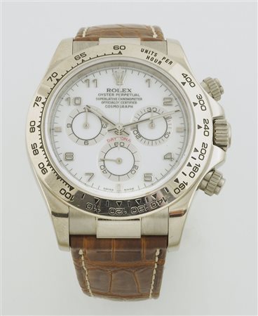 Rolex: cronografo da polso Daytona in oro bianco, quadrante bianco, cinturino...
