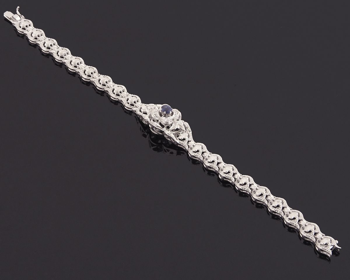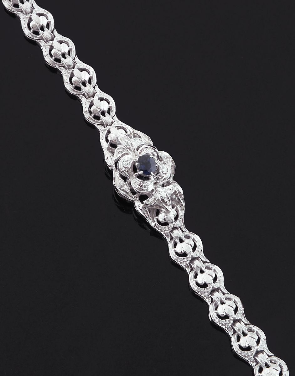 Bracciale in oro bianco con zaffiro centrale e diamantini, anni '60