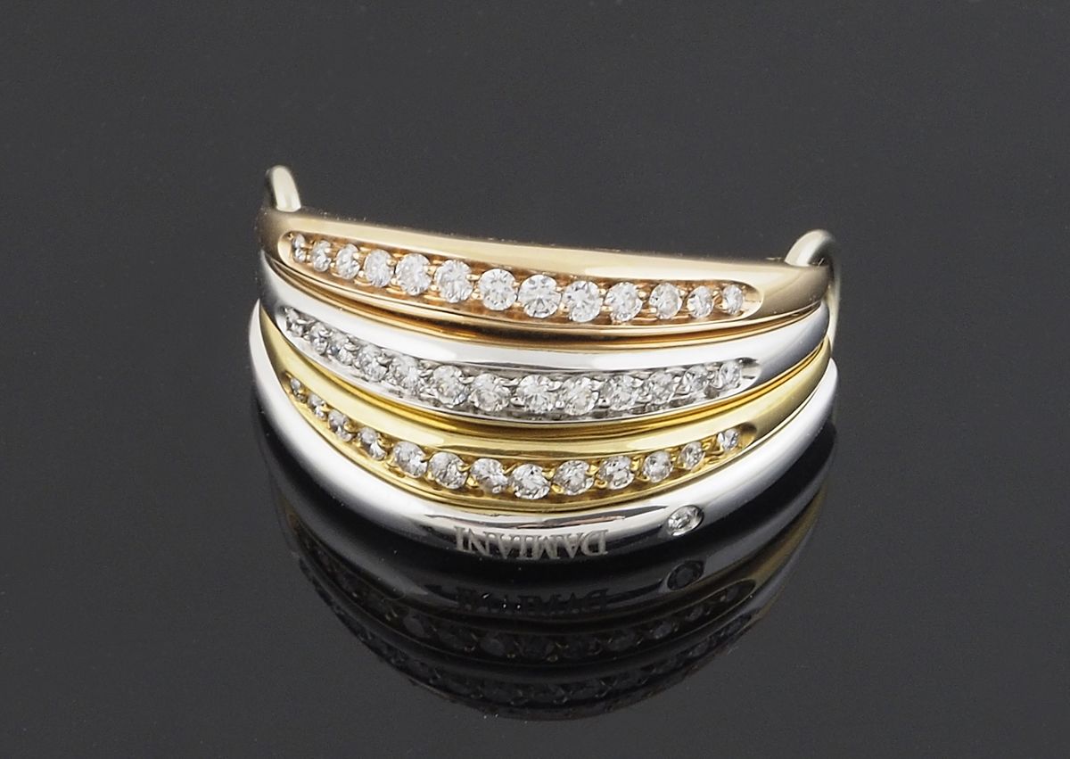 Anello Damiani modello Gaia in oro rosa giallo e bianco con diamantini....