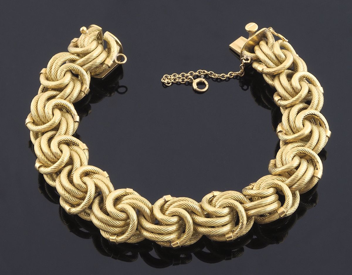 Bracciale in oro giallo lavorazioni ad intreccio, gr 43,7