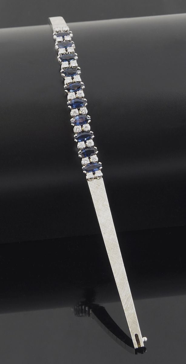 Bracciale semirigido in oro bianco satinato , parte centrale composto da 22 diamanti taglio brillante per ca ct 0,94 alternati da 10 zaffiri ovali per ca ct 4,97. Con certificato