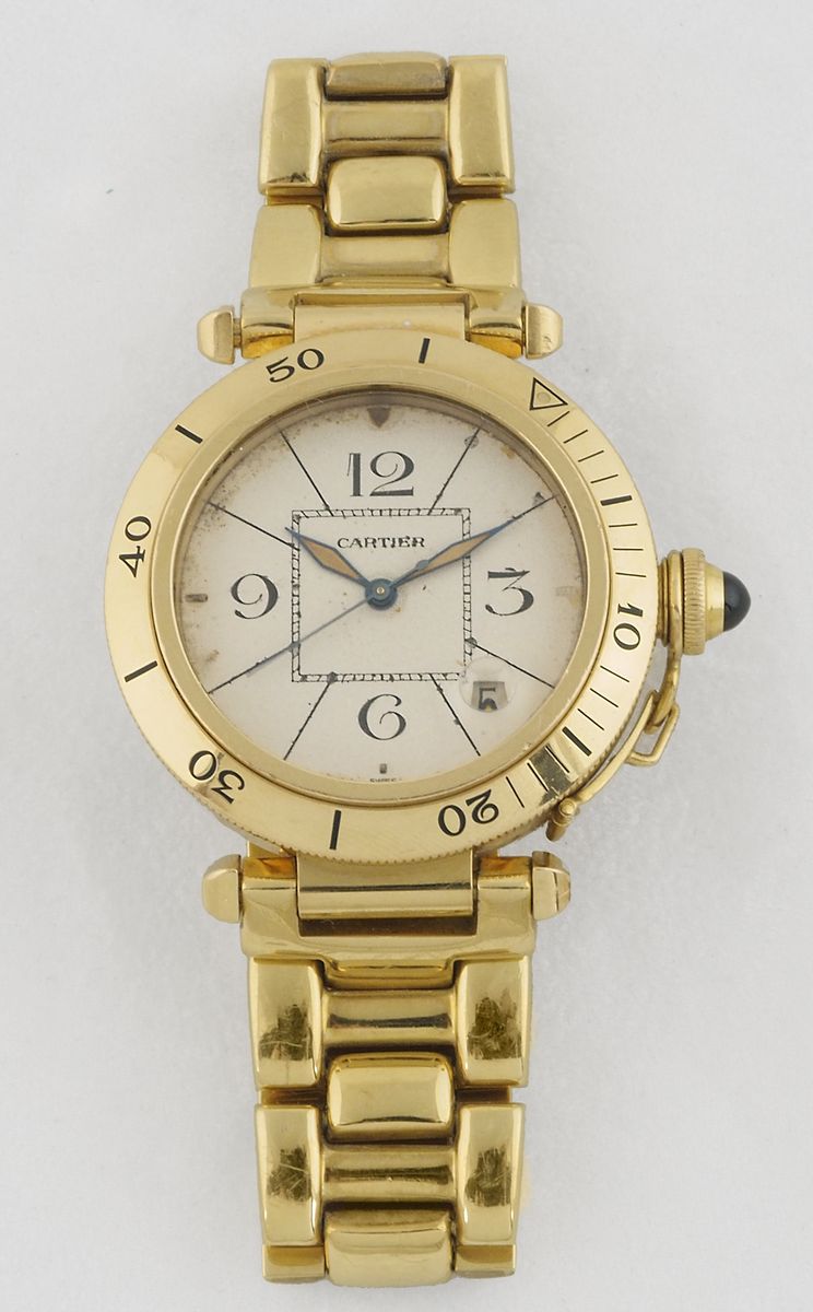 Cartier: orologio da polso in oro giallo modello Pasha con datario a ore 4,...
