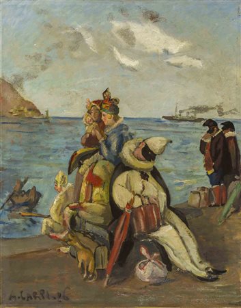 ALDO CARPI (1886 - 1973) La compagnia di Pulcinella 1926 Olio su tela 70 x 55...
