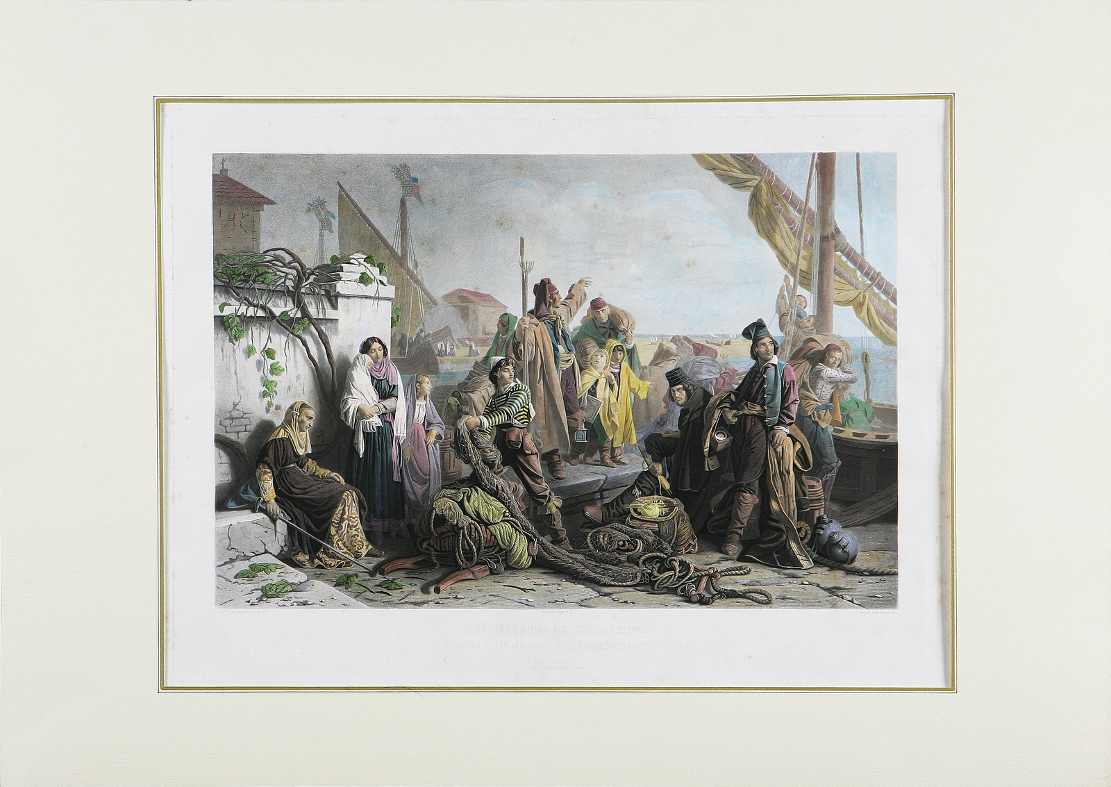 GAUTIER LOUIS ADOLPHE Pescatori dell'adriatico. 1850. Acquatinta. Cm 71x55....
