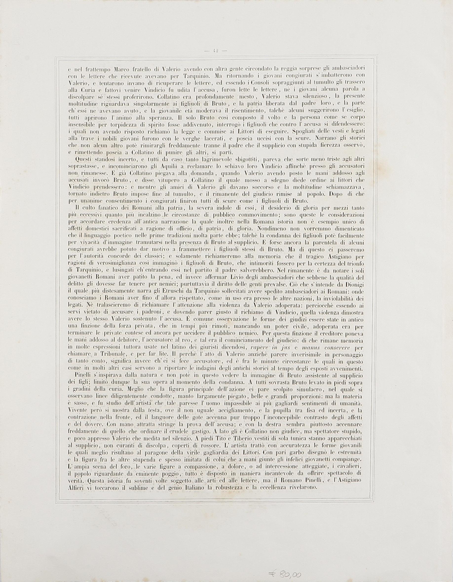 PINELLI BARTOLOMEO (1781 - 1835) Romolo ucciso dai senatori. 1818. Calcografia. Cm 51,7x40,5. Incisione calcografica alla punta con acquerellatura non coeva appartenente alla serie de la Istoria Romana… (tav. 8) - Roma 1818 (ma copia stampata nel 1840 ca.) - Dim. dell’intero foglio con ampi margini L. 51,7 x 40,5 cm. (dim. della sola parte incisa L. 42,2 x 30,9 cm.).Bibliogr.: FALCONIERI C. - Memoria intorno alla vita ecc. di Bartolomeo Pinelli, 1835 - G. INCISA DELLA ROCCHETTA - Roma 1956 - pp. 206, tav. XLVIII - LE BLANC, II, 206 - BENEZIT, III, 493 (Ed. del 1918) - BRYAN, 1903-05 - THIEME BECKER, Diz 19, 451 (1926).