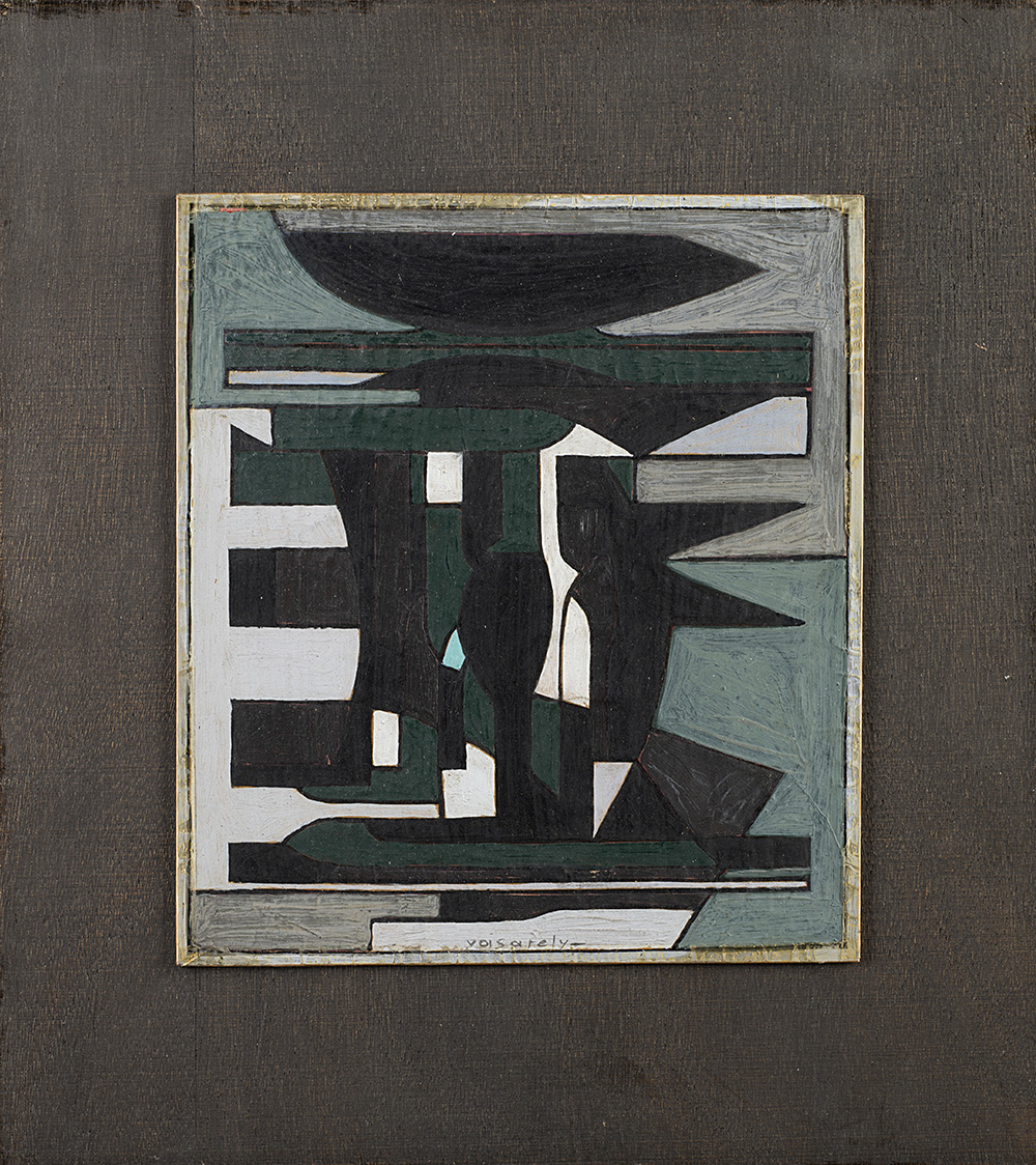 Victor Vasarely (Pecs 1906 - Parigi 1997)"Prividje" 1952olio su tavola...