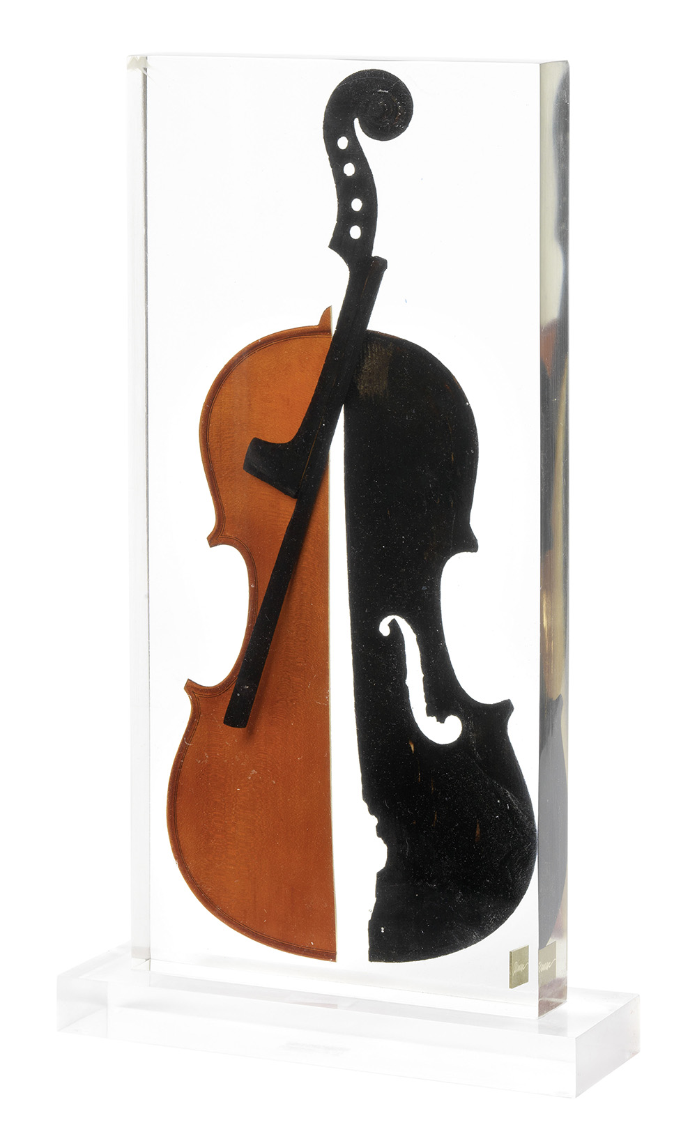 Arman, Nizza 1928 - 2005, Dance du feu, 1997, Violino bruciato in resina, multiplo, es. 86/100, cm. 51,5x24x4,5, Firma e tiratura su placchetta nella resina in basso a destra: Arman / 86/100., Certificato su foto Archives Denyse Durand-Ruel, con n. 6855.