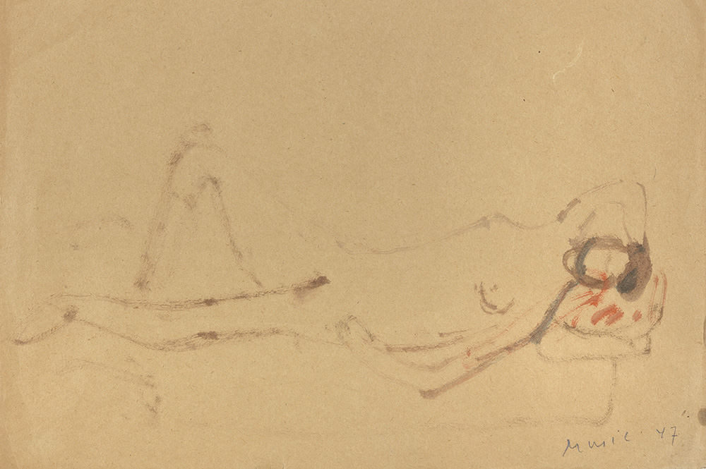 Antonio Zoran Music, Gorizia 1909 - Venezia 2005, Nudo, 1947, Tecnica mista su carta, cm. 24,9x37,2, Firma e data in basso a destra: Music 47., Certificato con foto Archivio Galleria d'Arte Contini, Venezia.