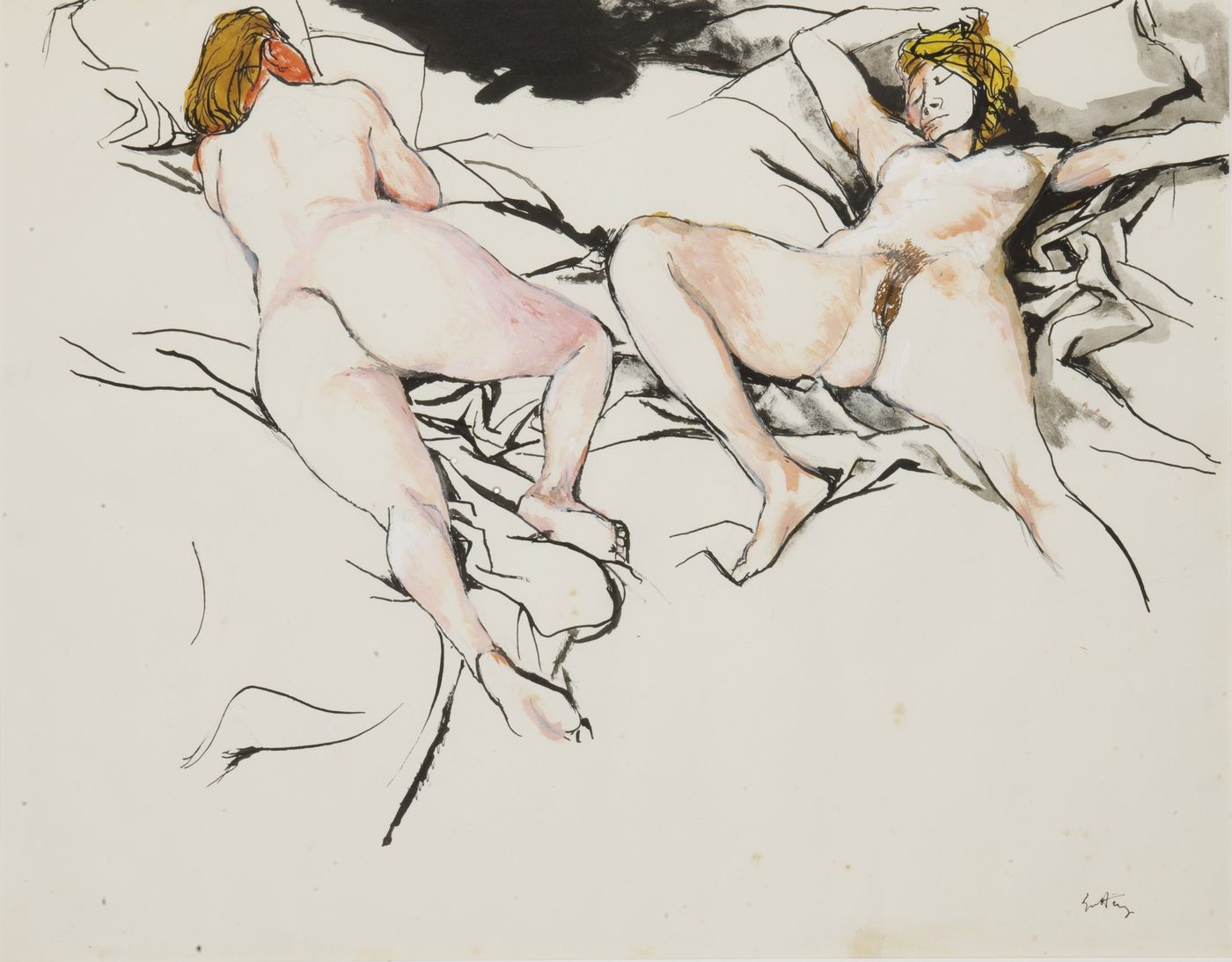 GUTTUSO RENATO Bagheria (PA) 1911 - 1987 Roma "Nude" 1985 48,5x61,5 china, tempera e acrilico su carta Opera firmata in basso a destra Opera archiviata presso gli Archivi Guttuso con il n° 1815412062 in data 24 ottobre 2010